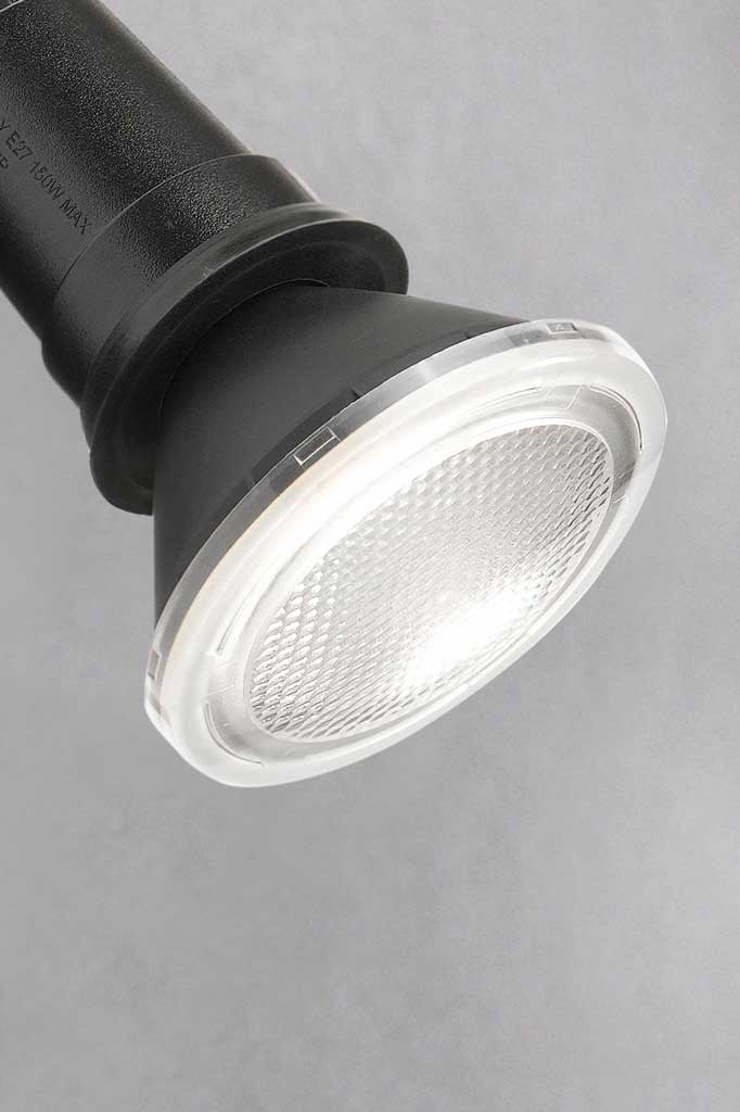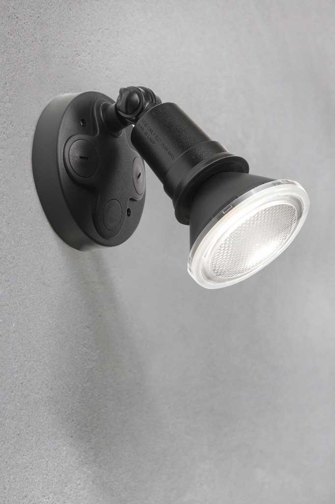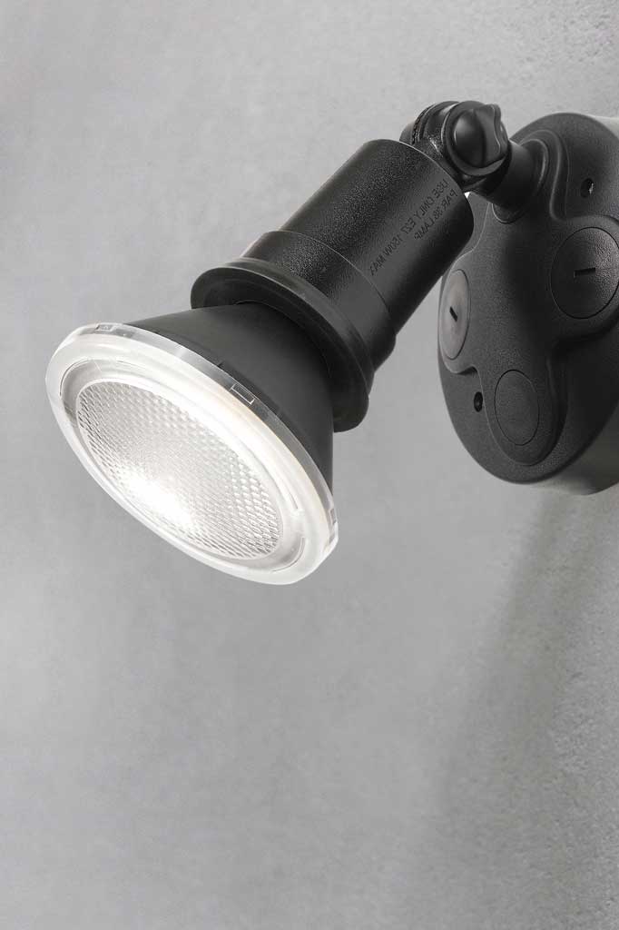 • This spotlight offers a modern industrial lighting solution for exterior facades.