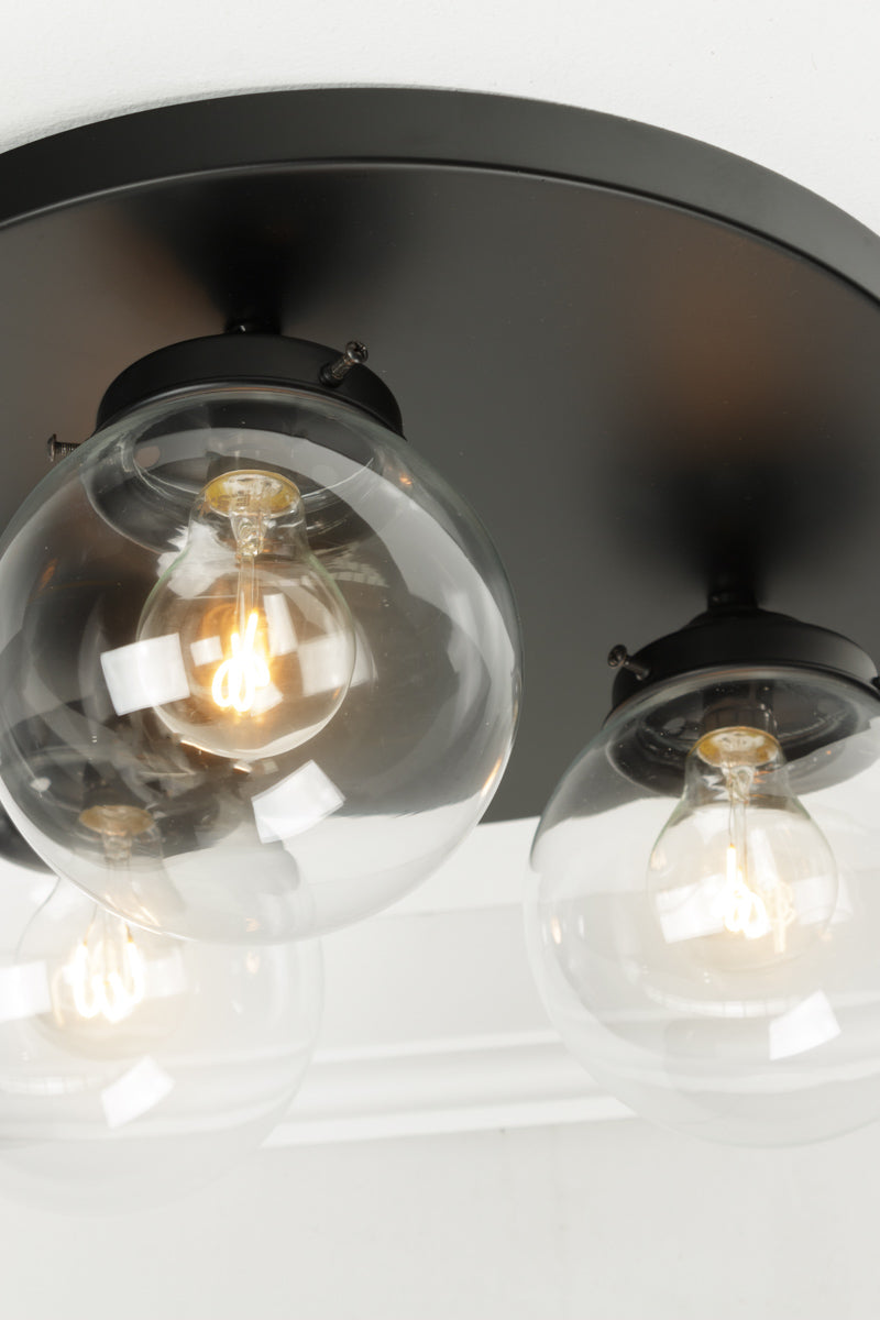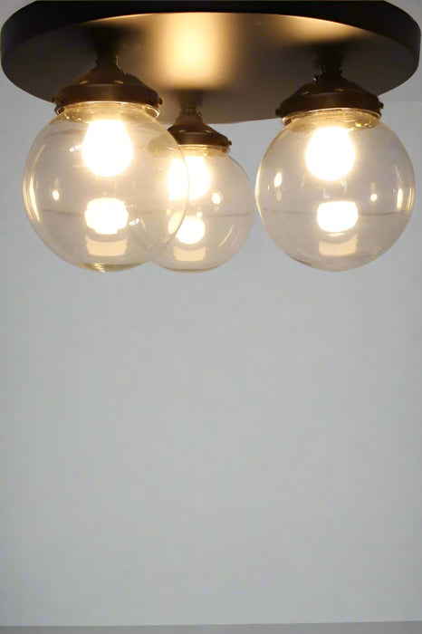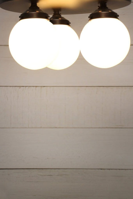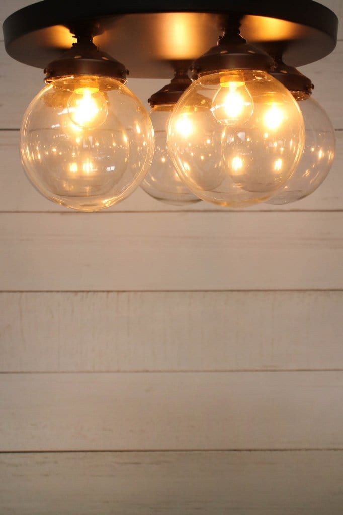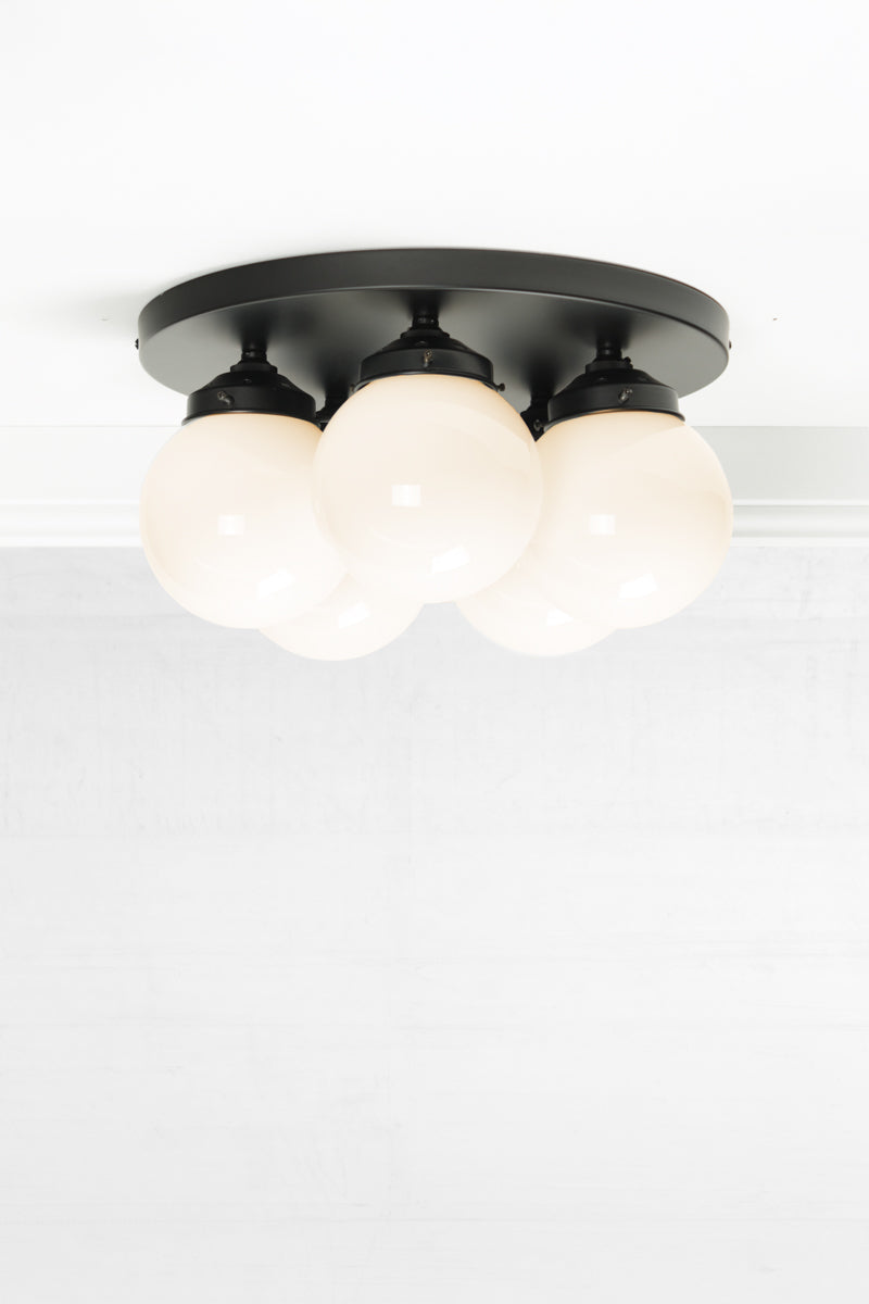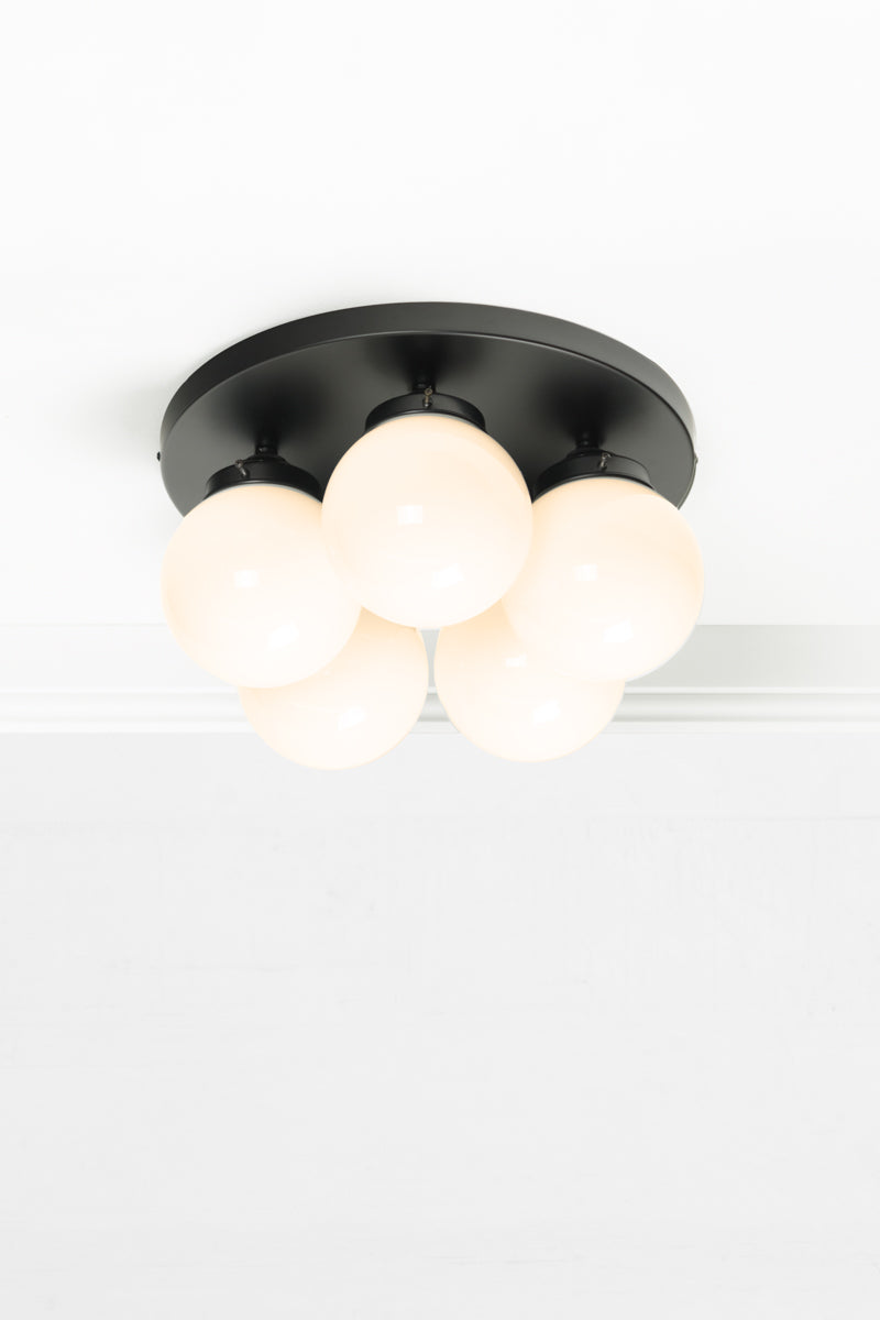 - This flush mount light features either clear or opal glass shades. The round shades are hand blown glass. Bubbles, lines, slight surface imperfections or discolouration are characteristics of all hand blown and handcrafted glass. They are not considered flaws or defects..
