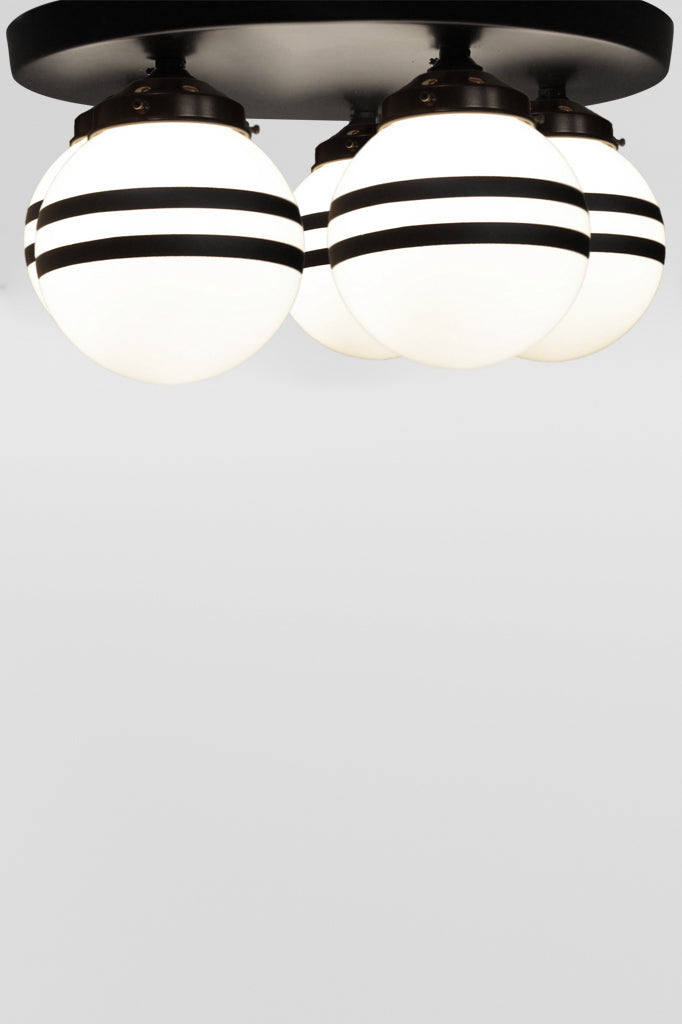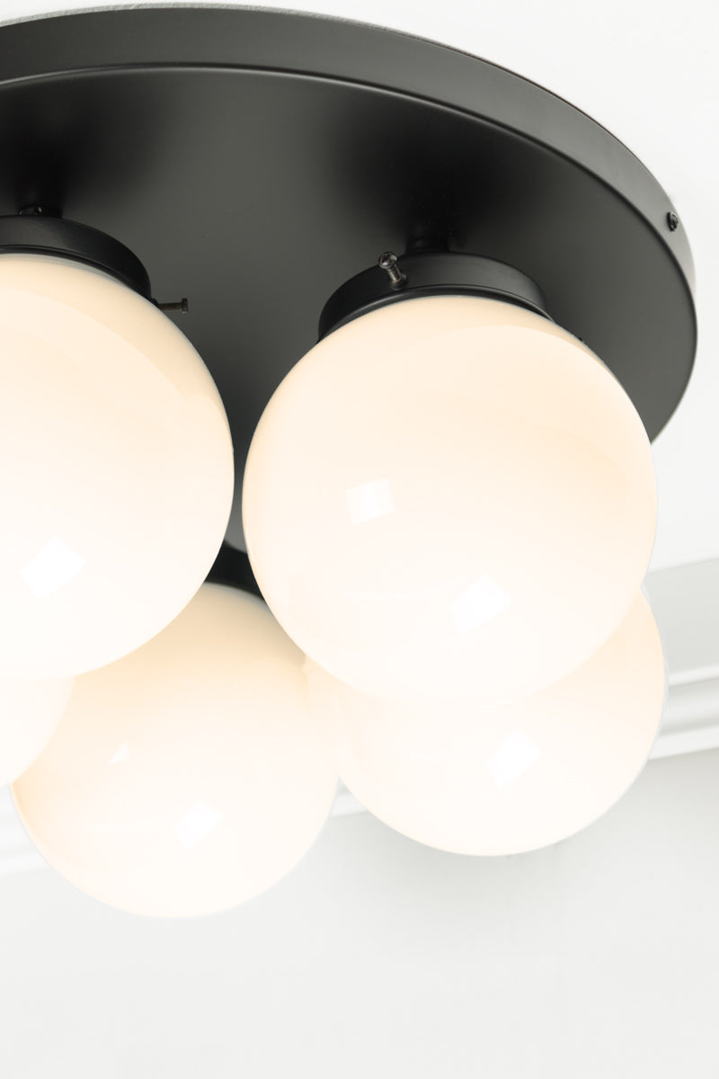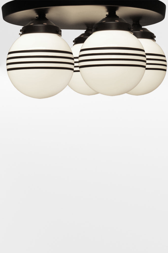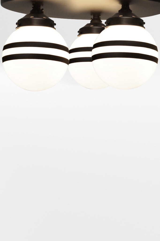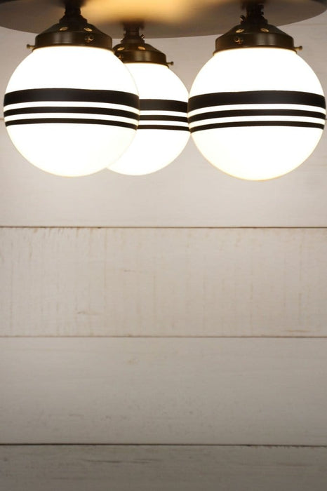 Add instant appeal to your home or business with this versatile take on classic glass ball lighting. It features a cluster of flush mounted shades mounted to a large circular ceiling rose for great illumination. Its glass shades come in clear or opal finish in a choice of three or five light options and include striped options for added flair. Install this ceiling light above a café seating area or in a lobby or an open kitchen space. Enhance your interior décor with a unique and eye catching designer light by Fat Shack Vintage.