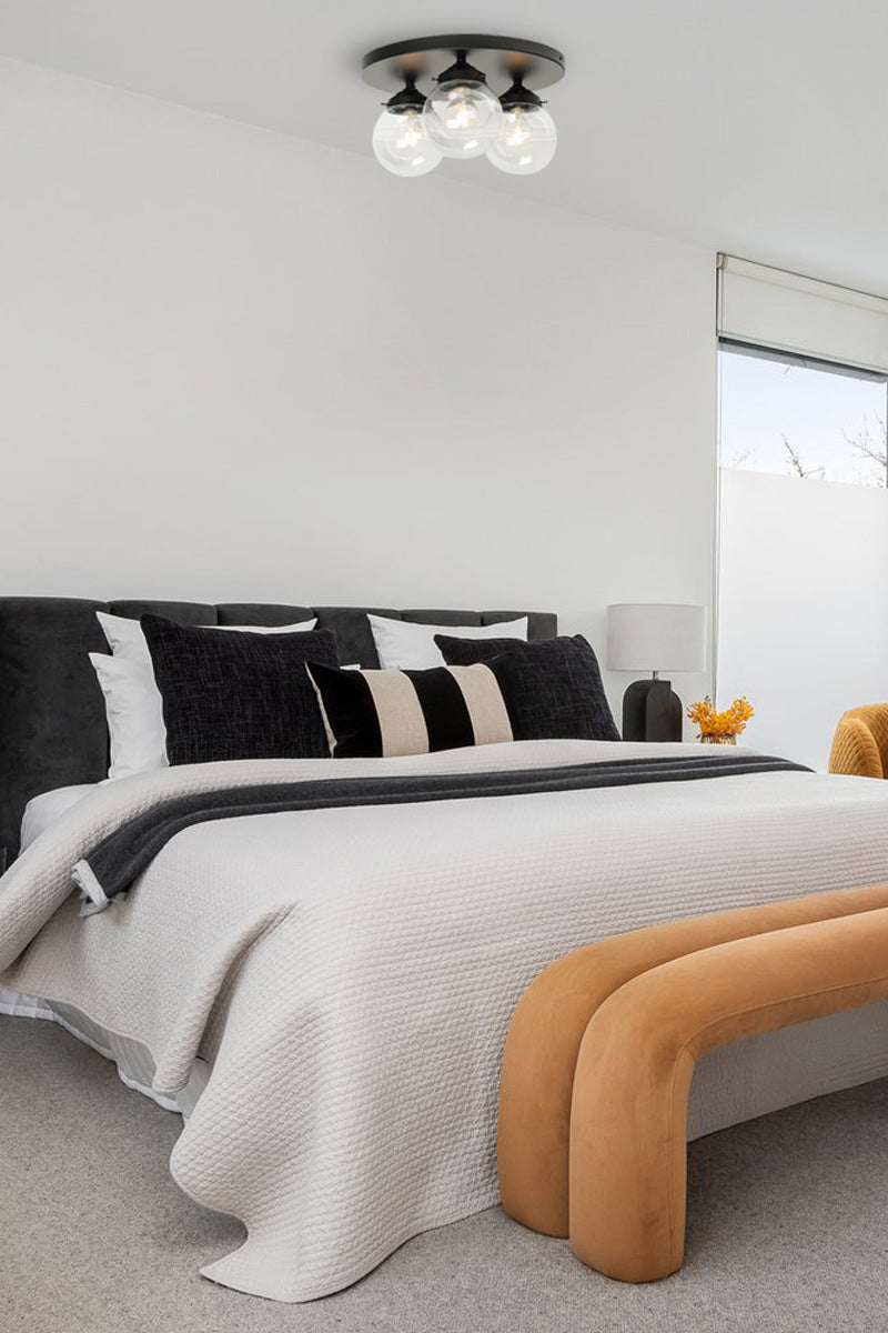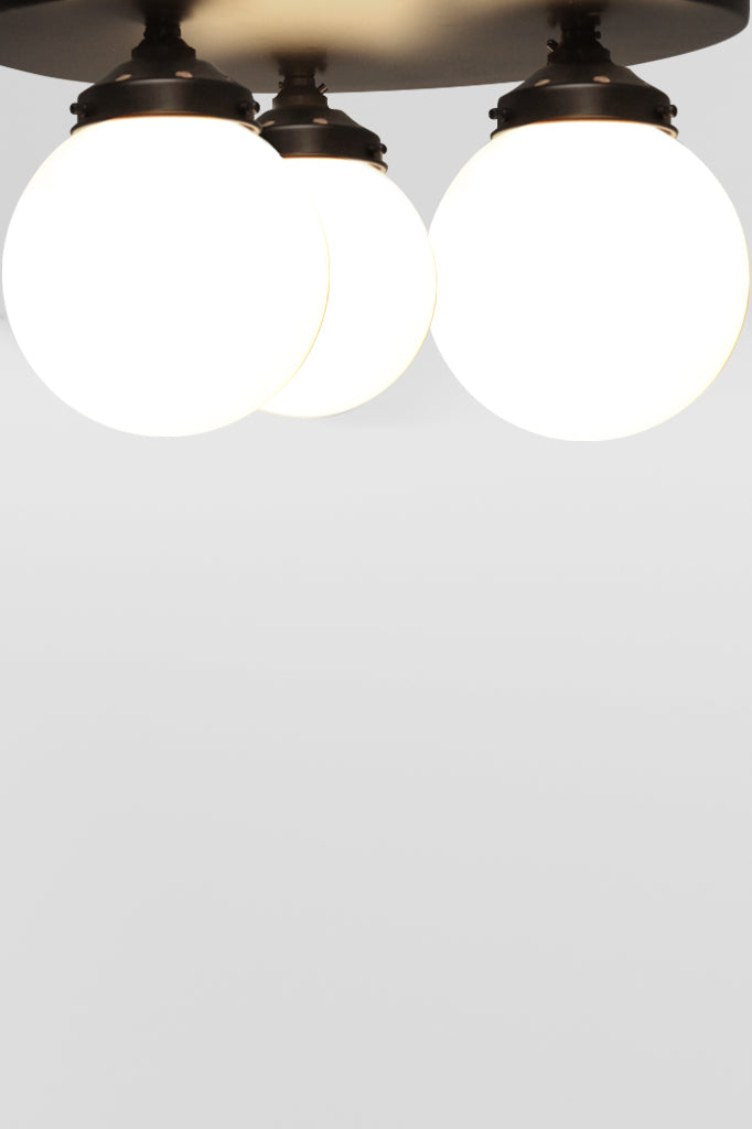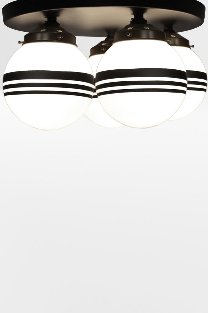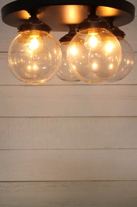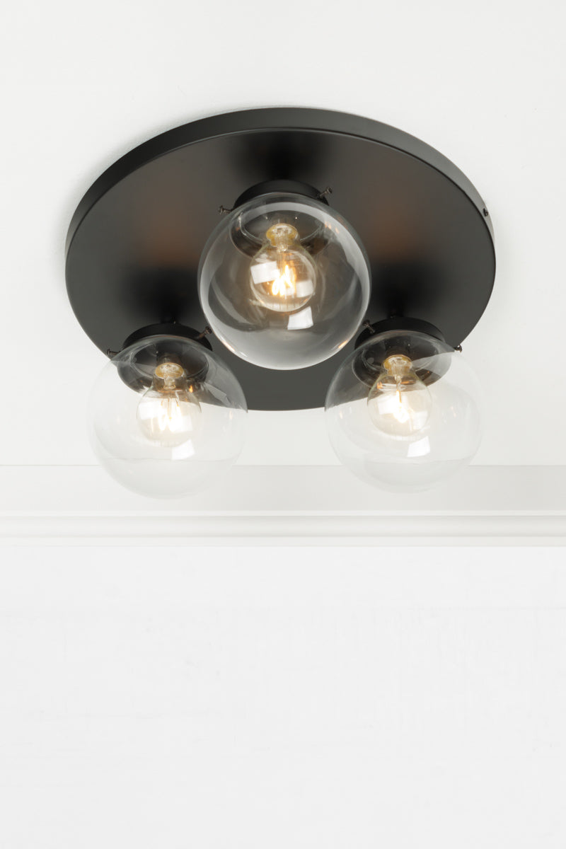 Add instant appeal to your home or business with this versatile take on classic glass ball lighting. It features a cluster of flush mounted shades mounted to a large circular ceiling rose for great illumination. Its glass shades come in clear or opal finish in a choice of three or five light options and include striped options for added flair. Install this ceiling light above a café seating area or in a lobby or an open kitchen space. Enhance your interior décor with a unique and eye catching designer light by Fat Shack Vintage.