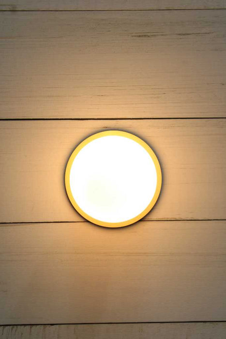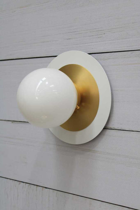 - The disc wall sconce comes in black, solid brass, metal and white, and is available in small and large.