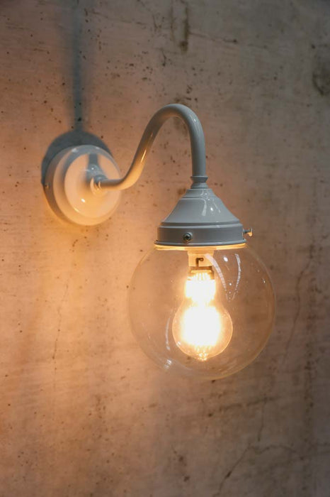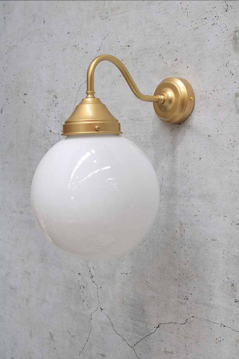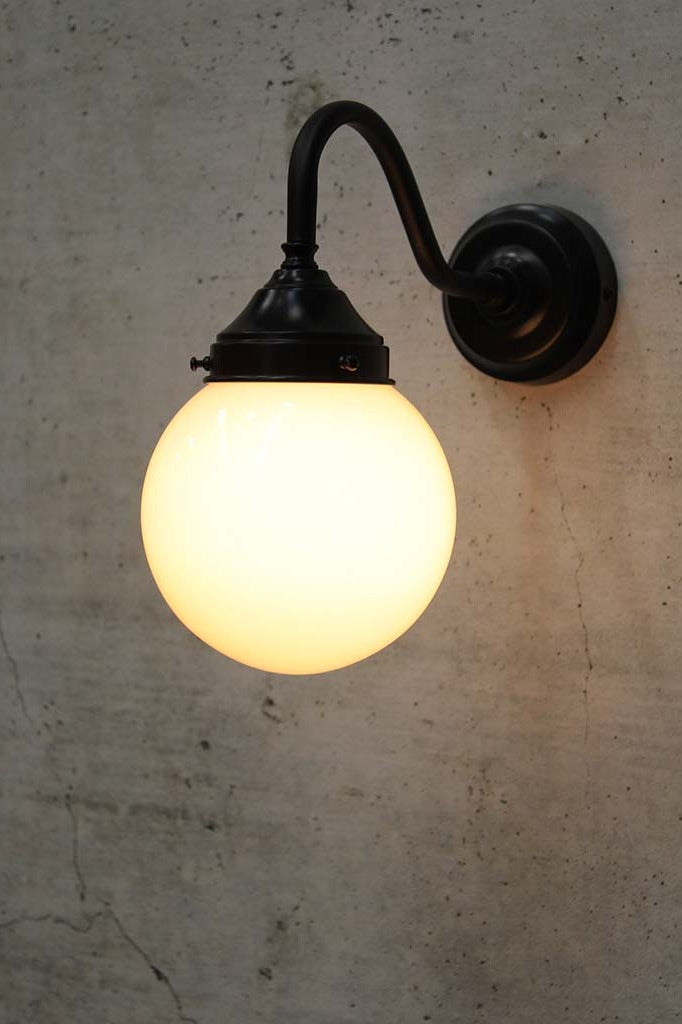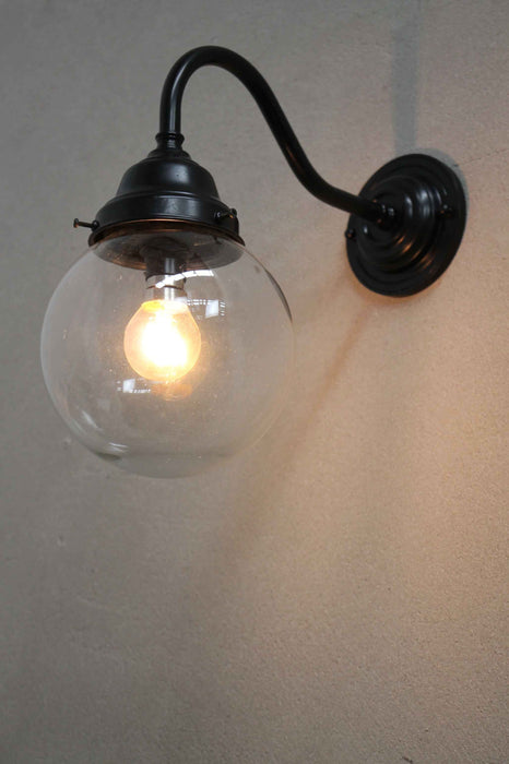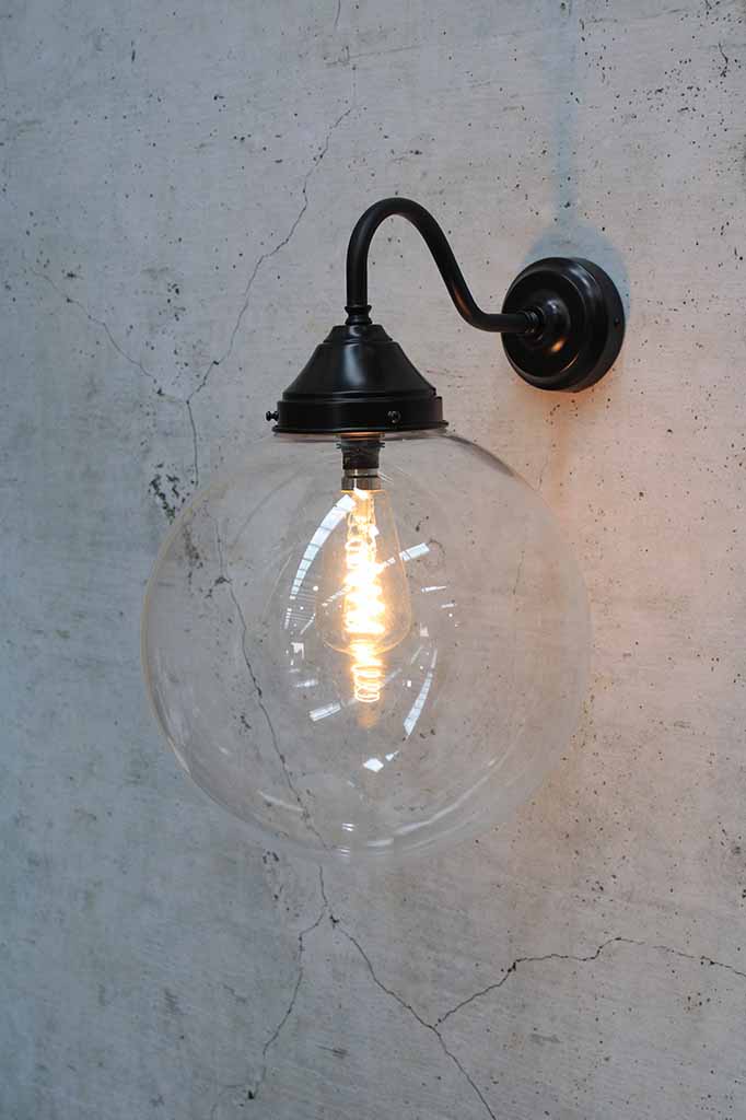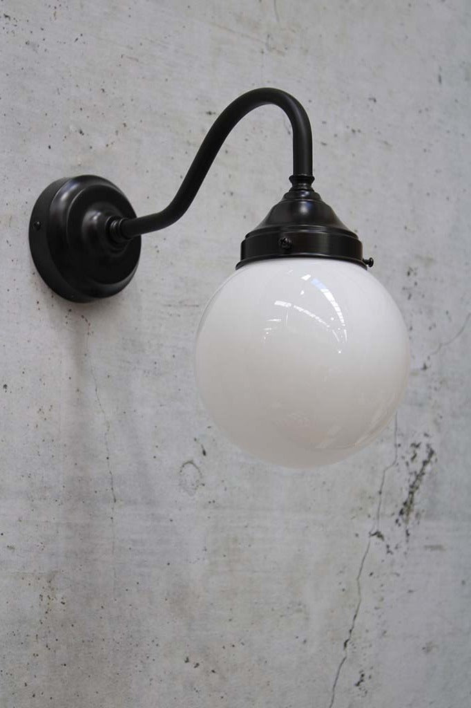 Create a bold statement with the Glass Ball Gooseneck Exterior Light. Constructed from quality steel or brass, the wall sconce is available in multiple finishes. While the glass shades are hand blown and come in two finishes and three sizes. Echoing timeless appeal, these exterior gooseneck lights have an IP44 rating and are ideal for both residential and commercial fit-outs, including beer gardens, al fresco dining spaces and bistro's.