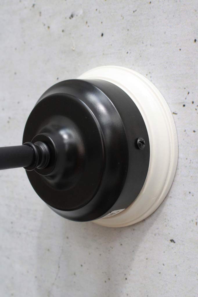 - The steel sconce is available in Black, Gold/ Brass and white finishes.