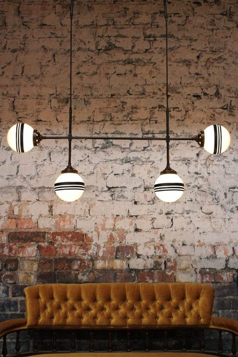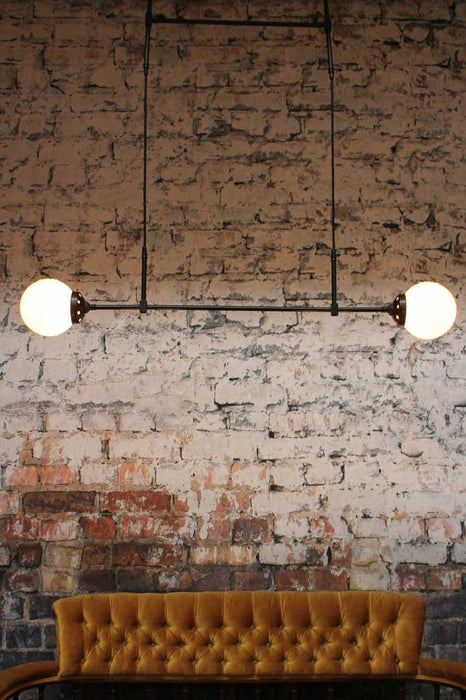 This Glass Ball Junction Light marries a classic style milky glass orb with the sleek lines of a modern pendant. This fixture is a quintessential Parisian expression of what the 1920s called 'deco industrialism'. It has a hand assembled frame made from quality brass complete with a matt black finish and comes in two sizes. Coupled with timeless round opal or clear shades in a choice of three sizes, this pendant makes a great centrepiece in living rooms and dining tables.