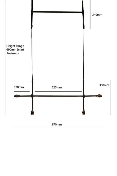 - The bottom section is 870mm wide (from horizontal lampholder to lampholder and 350mm high (from lampholder to cord).
