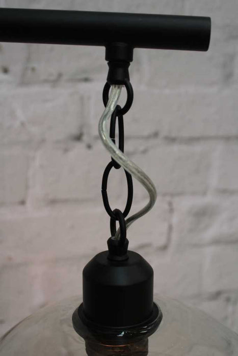 - Glass shade suspended on metal chain