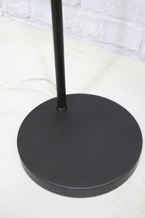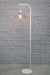 - Steel pole floor lamp available in either black or white finish.