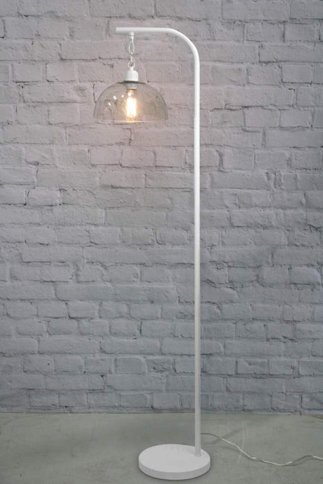 A subtle yet practical design, the Glass Dome Suspended Floor Lamp is the ideal choice to complement your space. The clean, curved glass shade stands out against and highlights the distinct chain suspension. With its base available in either black or white, this lamp is well suited to a range of spaces, from your living room to a modern styled retail space.