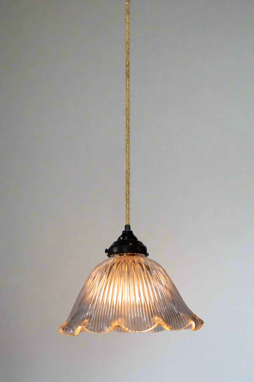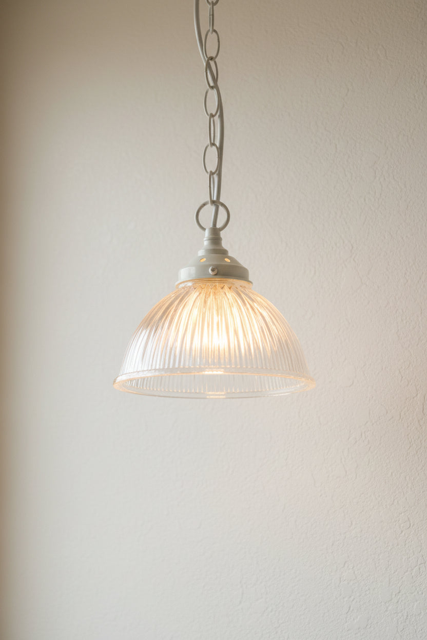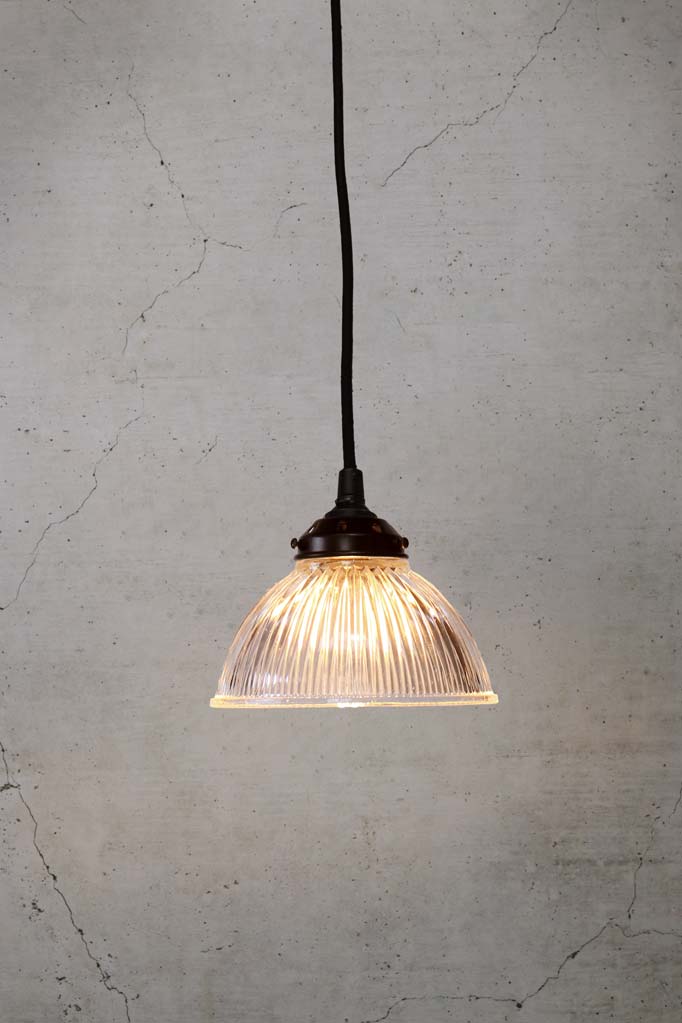 The Como Glass Pendant adds a touch of traditional vintage charm to any room. Holophane glass was a popular choice in the early 1900s. The ribbed glass shade comes in two finishes and can be customised with your choice of pendant cord. Ideal for bedroom lighting, dining room lighting or kitchen lighting, as well as café lighting or commercial fitouts that are looking to inject some classic vintage style.
