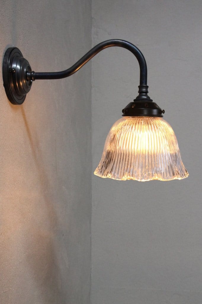 - Brass or steel gooseneck wall sconce in a choice of finishes