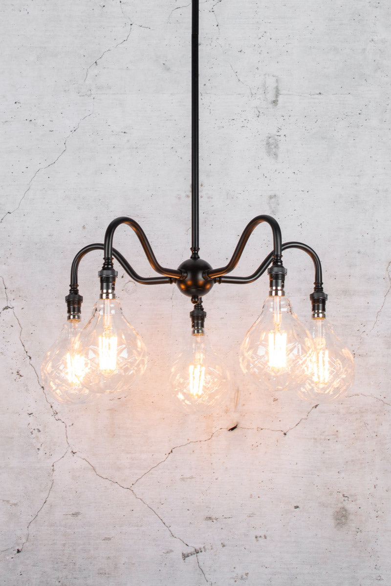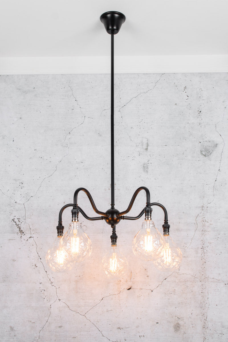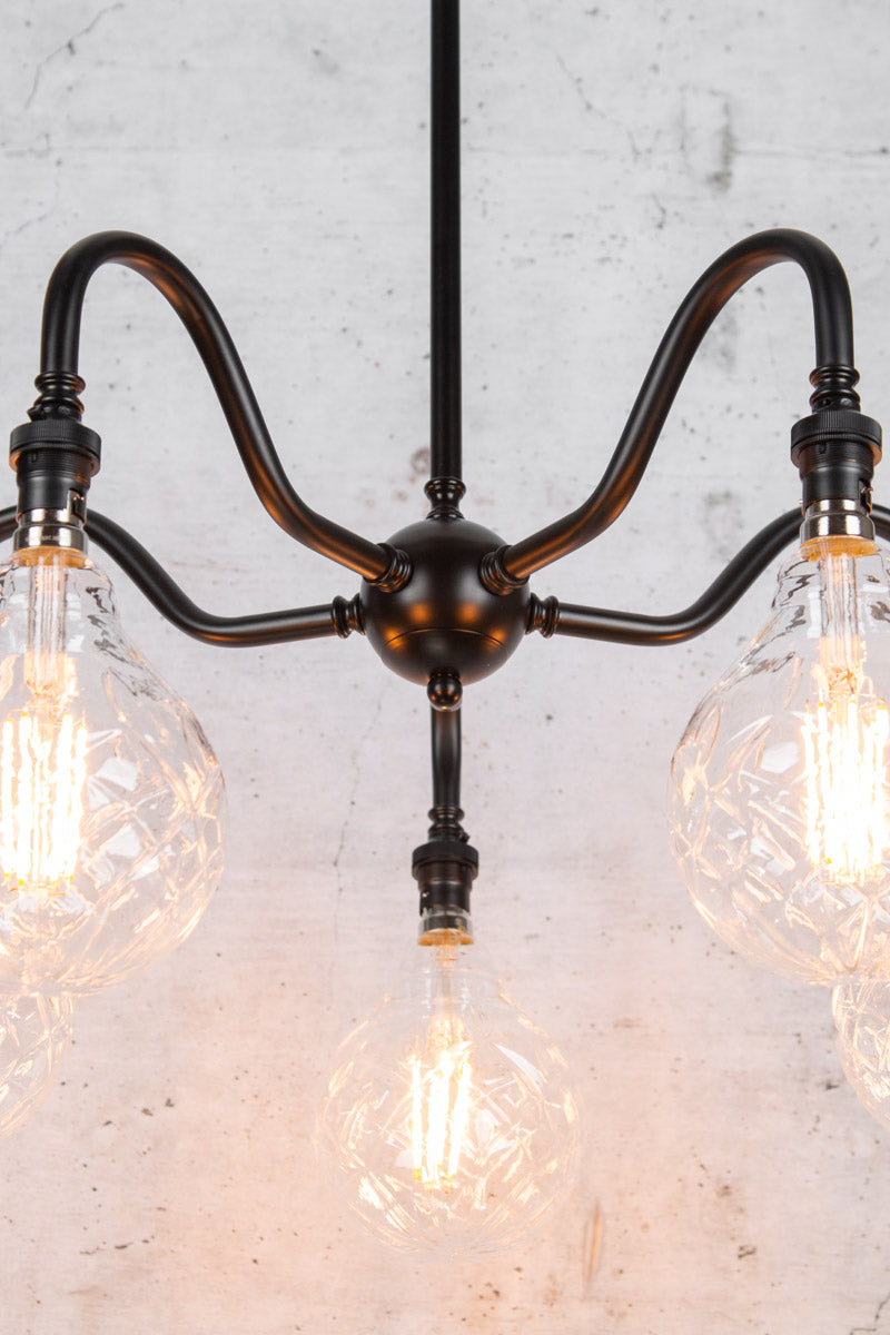 - Heavy brass or steel multi light pendant available in a matt black finish