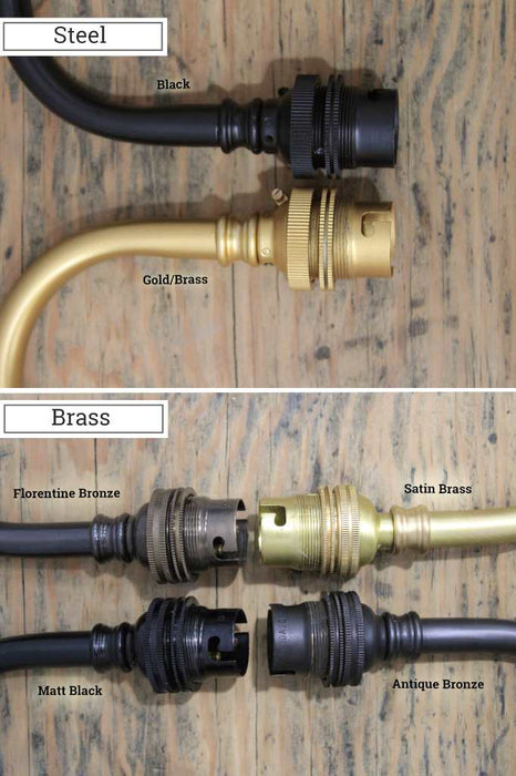 - The steel suspension with gooseneck arms frames comes in black or gold/brass finish. The 5 arm is only available in black finish.