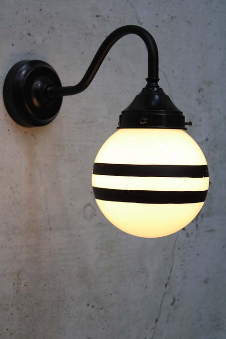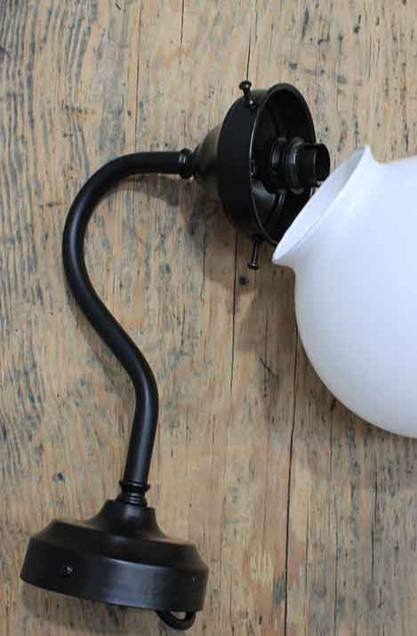 These Gooseneck Exterior Wall Lights adds a classic touch to any space. Featuring a hand-painted artisanal opal-blown glass ball shade. It is paired with a quality steel wall sconce mount in either black, gold or white. It's the perfect wall light for chic restaurant, whisky bar or boutique hotel décor. With its speakeasy-esque low lighting, create a luxurious feel with a single feature or multiple wall lights in an entryway.