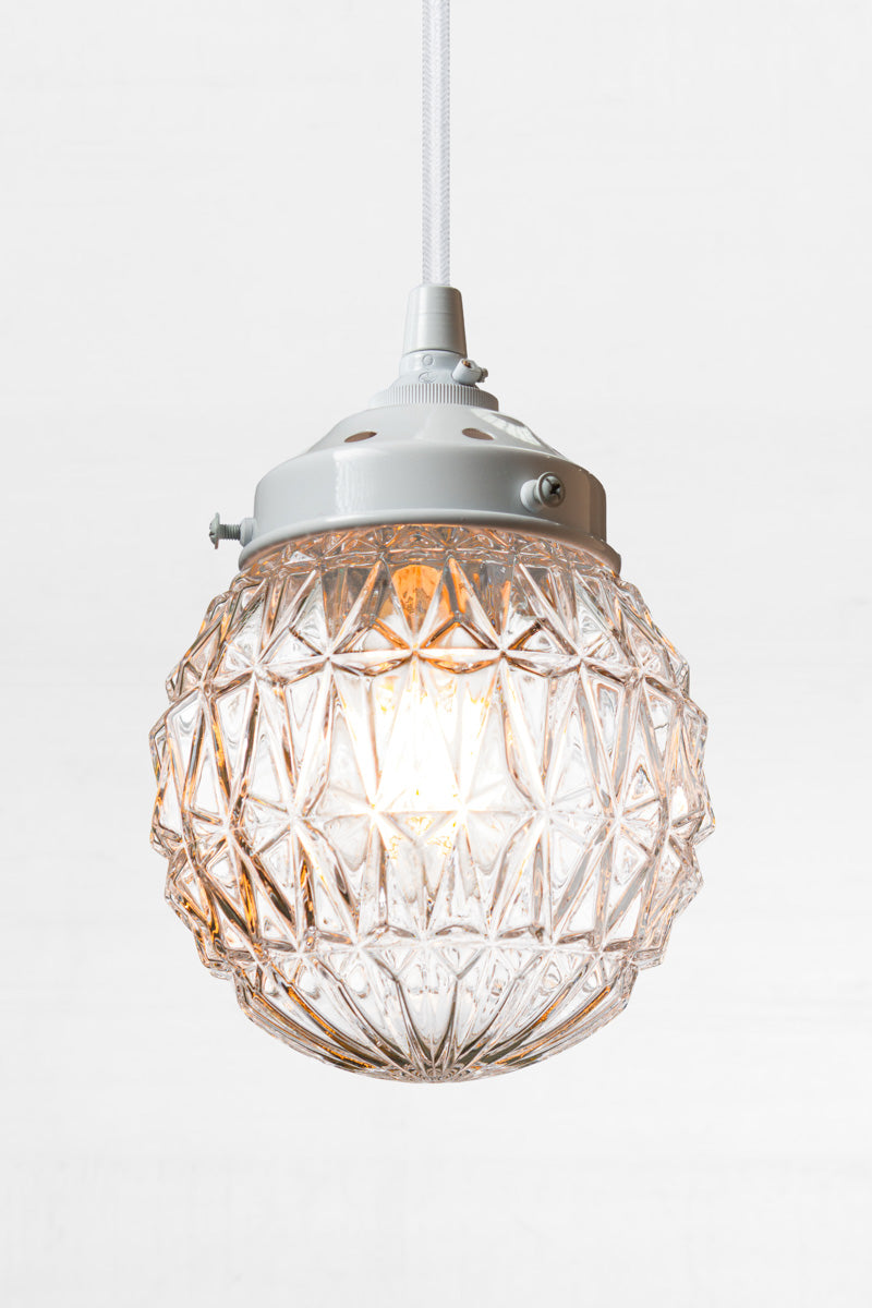 With a textured geometric pattern, the Henricksens Glass Pendant Light exemplifies mid-century modern style. It will add character to a living room or formal dining area. Not limited to residential use this pendant would feel right at home in a stylish office or vintage bar. Available only at Fat Shack Vintage!