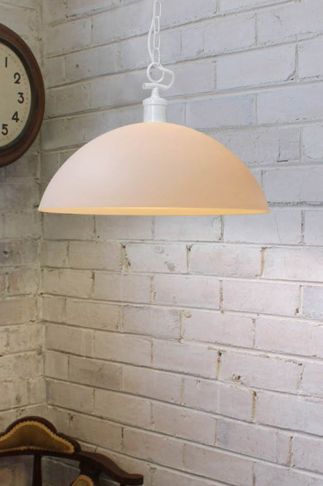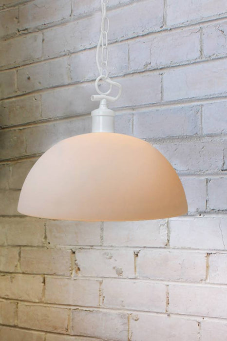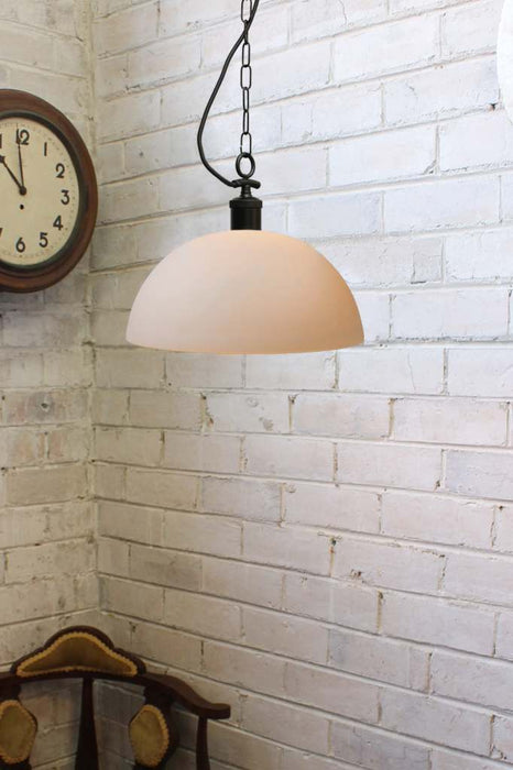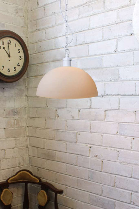 • The opal glass pendant shades comes in small and large sizes. The small measures 300mm in diameter with a height of 160mm. The large measures 420mm in diameter with a height of 210mm.