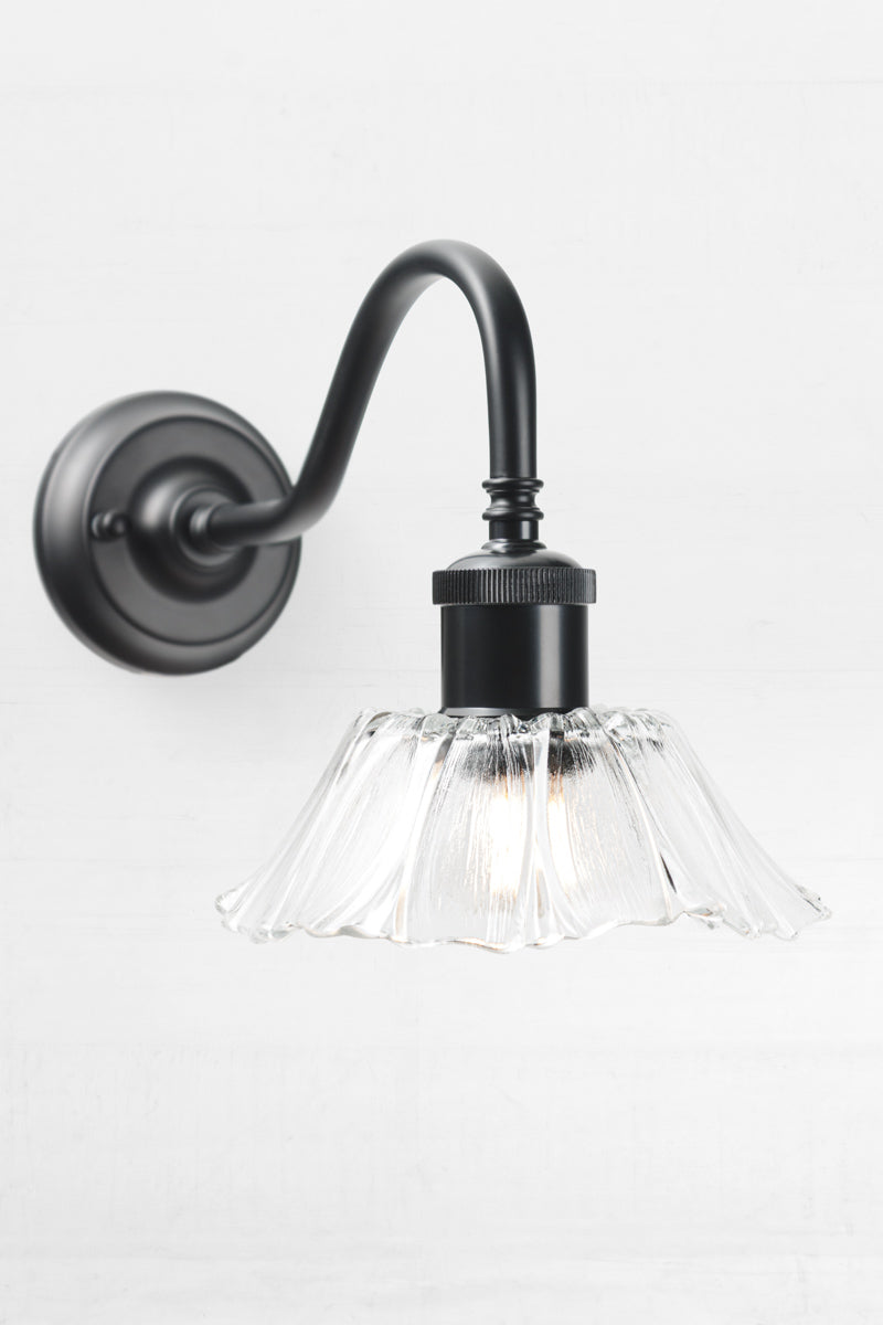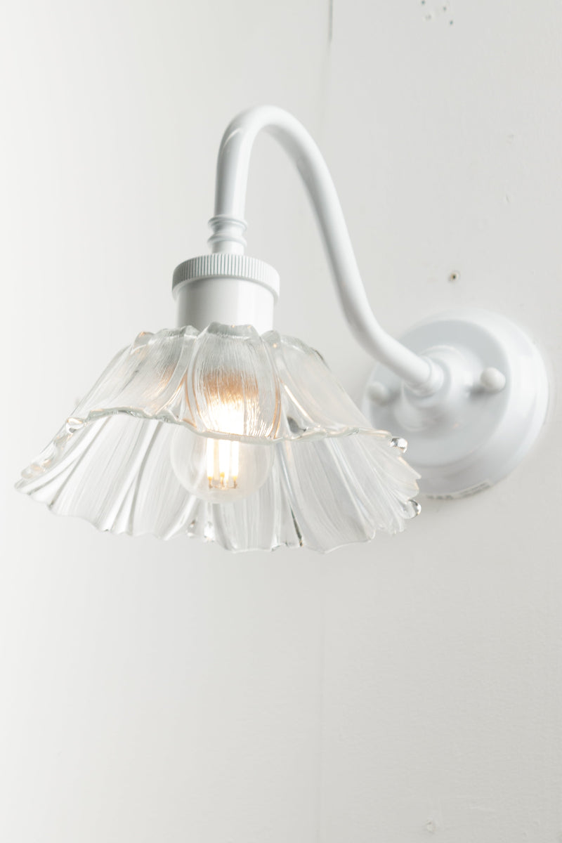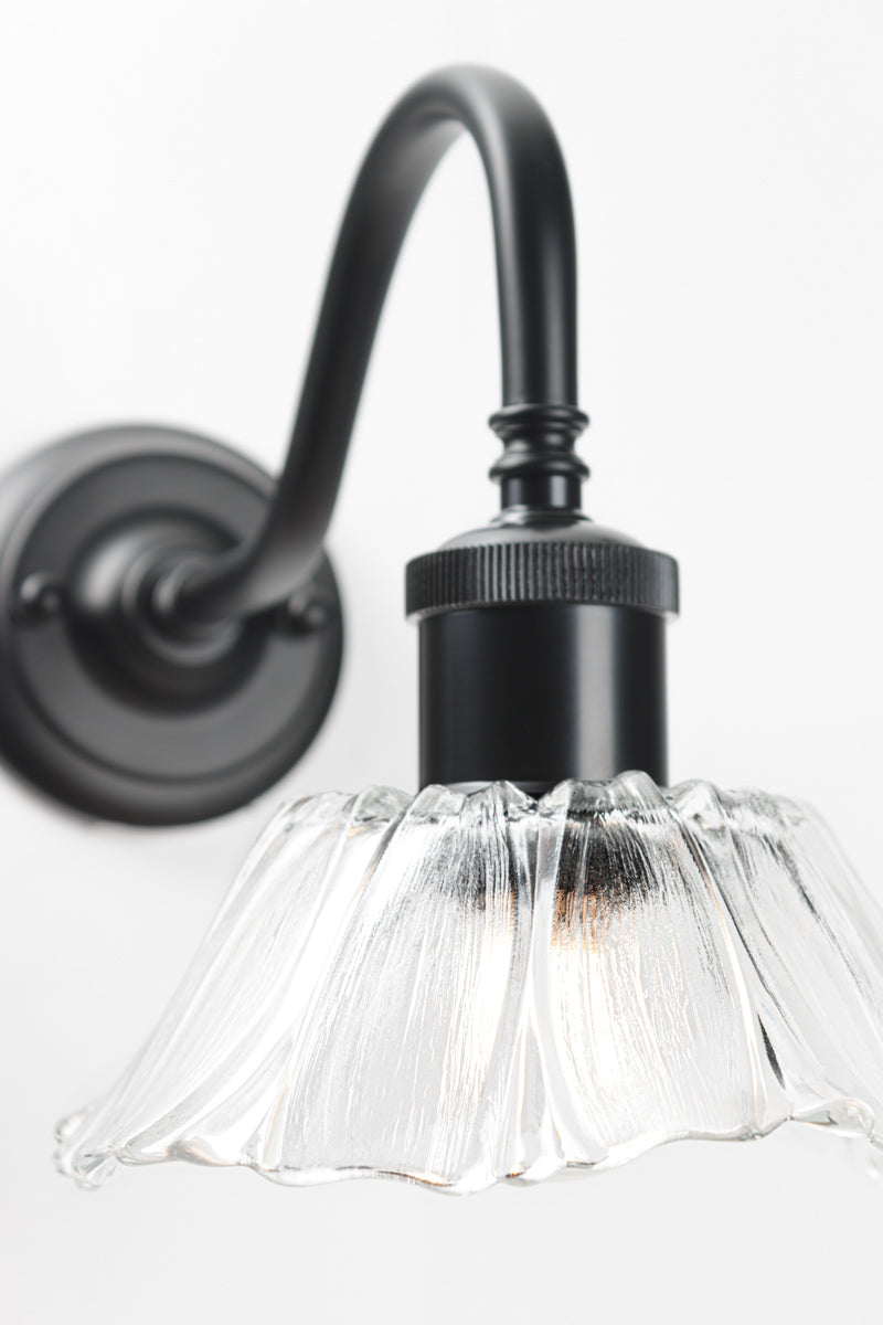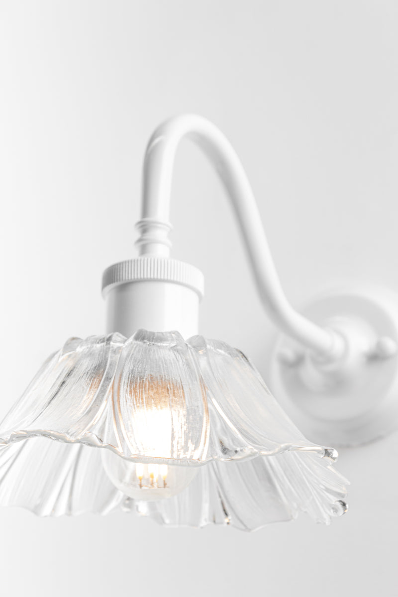 Bring a captivating look to your décor effortlessly with the Honfleur Glass Gooseneck Wall Light. It's beauty and poise complements a huge range of interior styles. Crafted from glass, this petite shade has an impressive heftiness for its size. It is elegantly paired with a steel sconce in various finish options. It's truly a charming decorative piece.