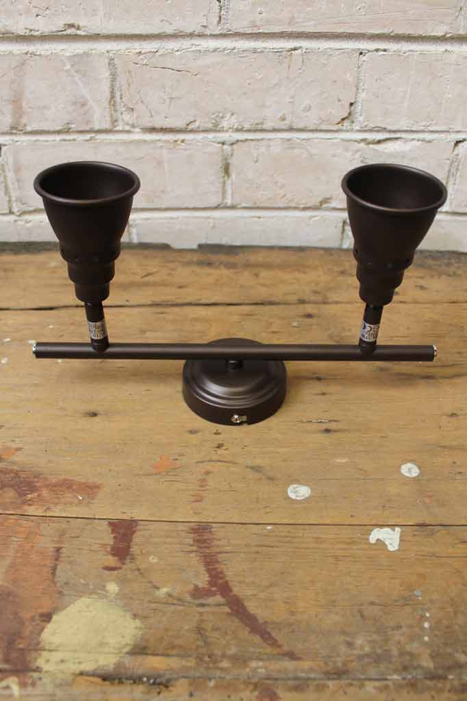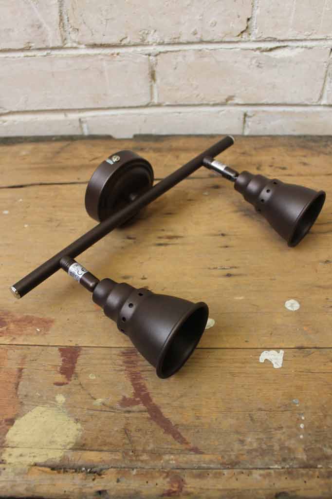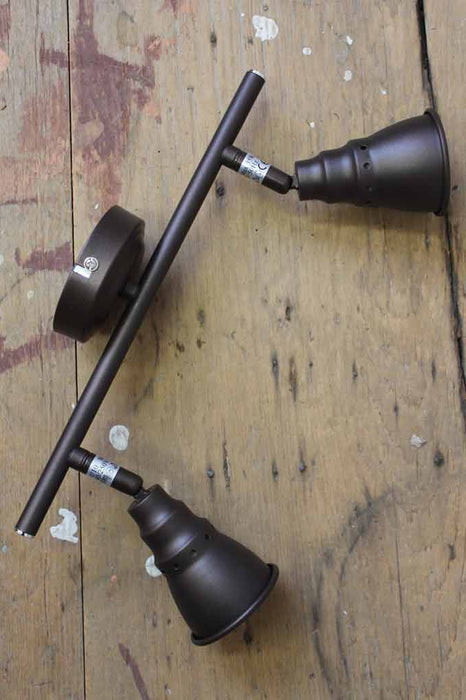 Add seamless vintage style with our Industrial Funnel 2 Light Adjustable Bar Spotlight. Finished in antique bronze, this 2 light spotlight has a 90 degree tilt with an approximately 320 degree swivel, so it is sure to light up your space. The shades have smooth shaped curves and an antique bronze finish, creating a quaint vintage look. Ideal for a range of applications as both ceiling or wall spotlights, this light is ideal for homes, shop fit-outs, restaurants and cafes.