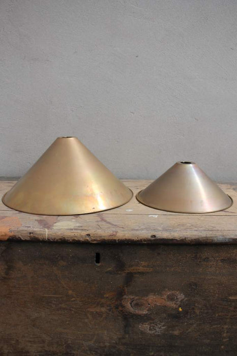 - The Aged Solid Brass/Copper shades have been fired for a deeper aged look. The Bright Brass/Copper shades have been mildly buffed on the outside to give them a brighter finish and then left raw. The inside is cleaned (not buffed) and then left raw. The shades are then oil rubbed to preserve the look for longer. Both finishes will continue to patina over time, dependant on the environmental conditions they are placed in. The bright finish will patina at a slower rate because of the oil-rubbed finish.
