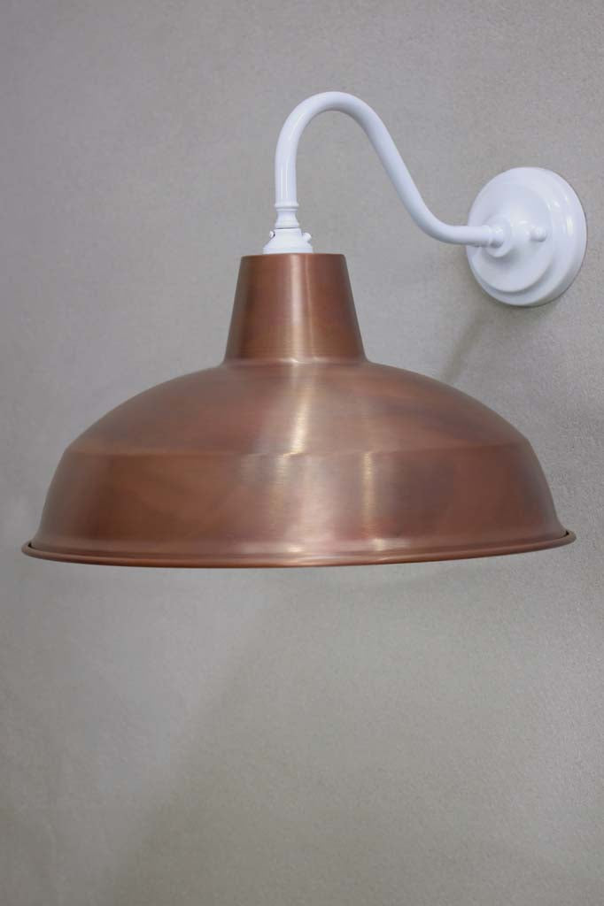 This Industrial Warehouse Gooseneck Wall Light brings a timeless touch to your interiors. The steel lampshade has that authentic classic feel and is available in a choice of three finishes. The shades, made from solid copper, have been fired for an authentic aged look. The gooseneck wall sconce is made from steel or handcrafted from high quality brass and comes in a selection of finishes to offer vintage or modern elegance. A versatile lighting solution, the wall light is ideal for spots where a pendant or floor lamp would be too obtrusive. Popular uses are in hallways and kitchens, and in commercial settings this light would suit urban restaurants, country pubs or rustic wedding venues.