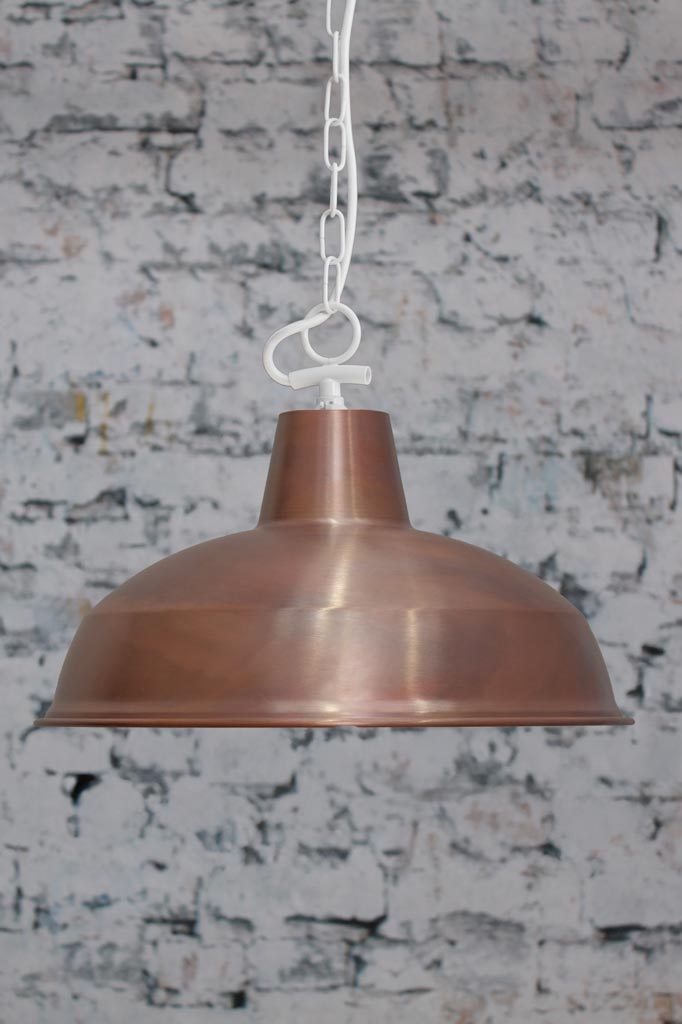 - The Aged Solid Copper shades are made from solid copper. It has been fired for an aged look finish. These shades have a natural oxidised finish that continues to develop over time. The rustic finish is rough and showcases the natural aged beauty of copper. The inside is cleaned (not buffed) and then left raw. This finish will continue to patina over time dependent on the environmental conditions they are placed in.
