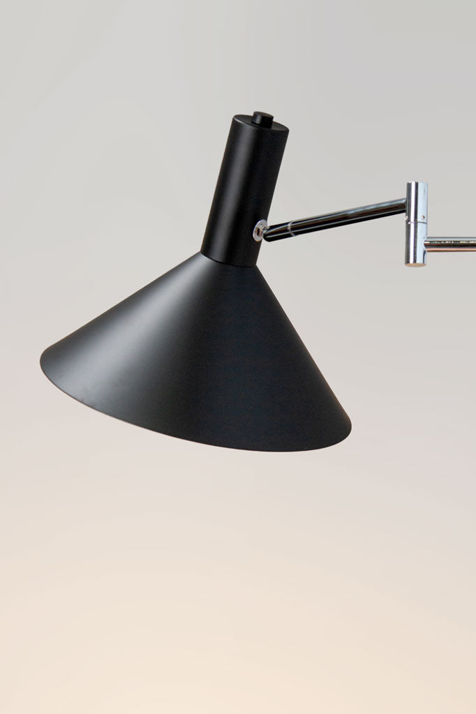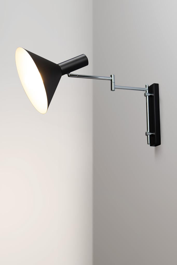 Defined by its understated design, the Iowa Wall Lamp adds an effortless, practical touch to any space. Made with steel, it boasts a large black shade and chrome arm for efficient and space-saving lighting. It transitions seamlessly into all decors and styles in the home or office. Ideal addition to bedside tables, desks or reading nooks.
