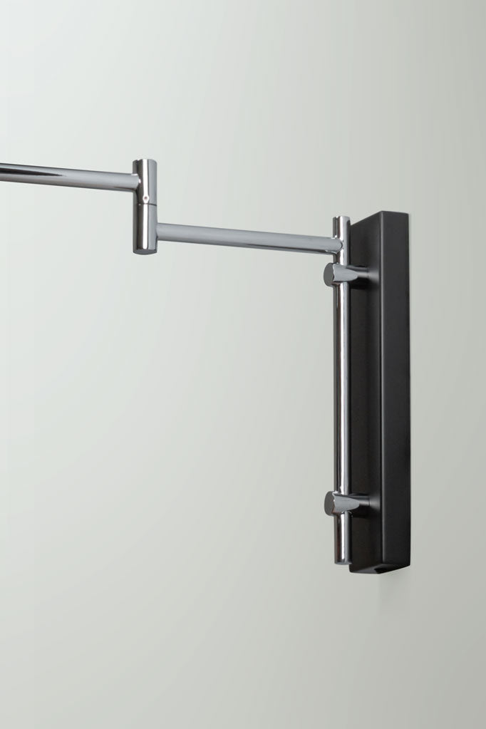 - The chrome arm is designed with a flexible elbow joint in the middle, providing movement for optimal positioning. The arm at the wall sconce end remains stationary.