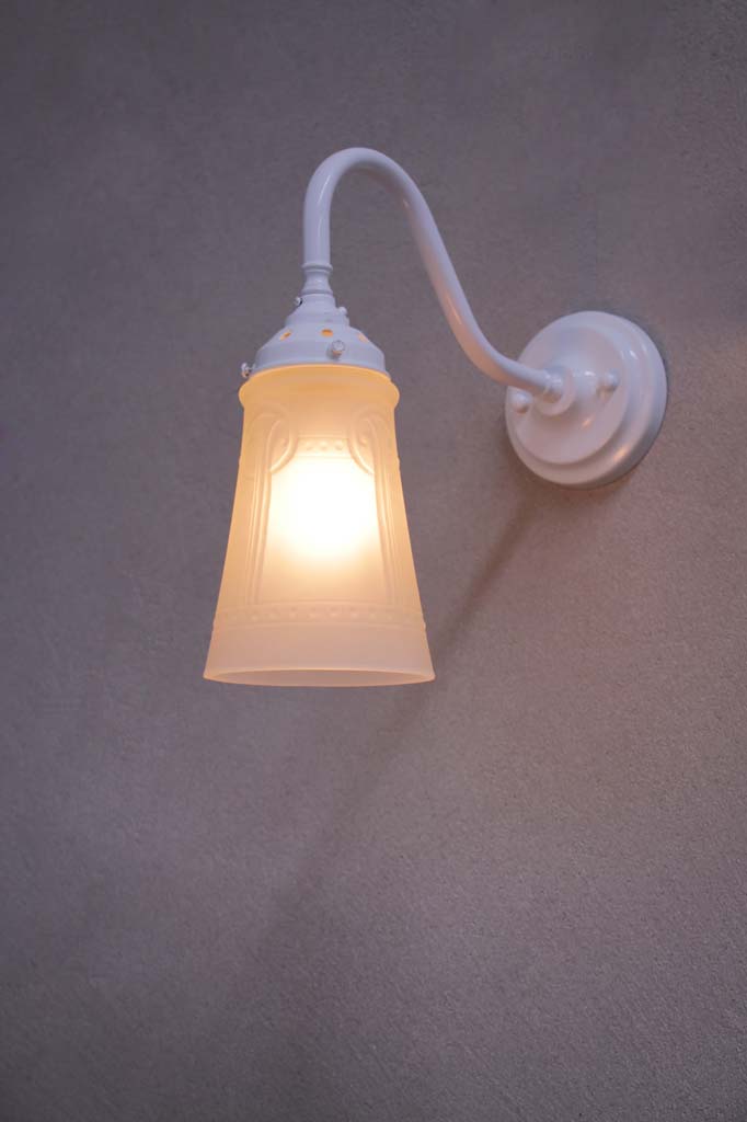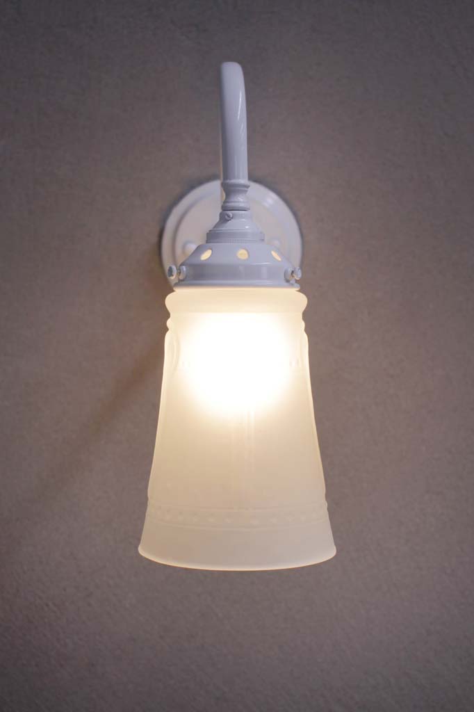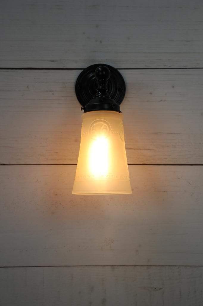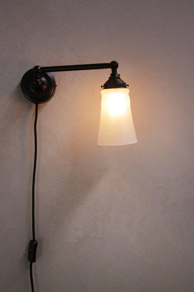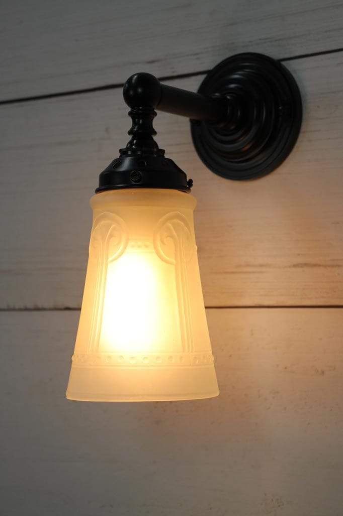 - The glass shade is mounted on a high quality brass or steel wall sconce.