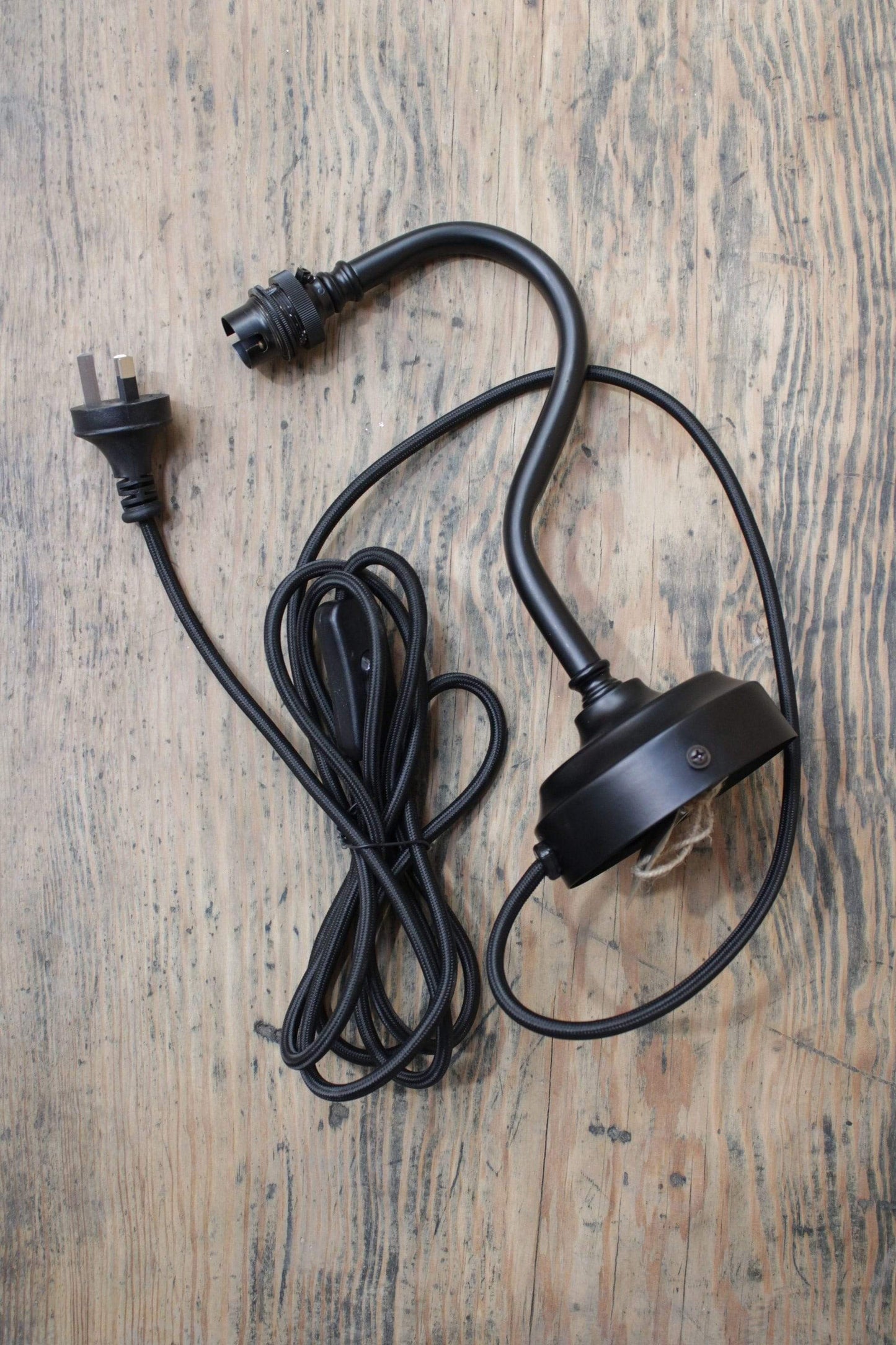 - The black steel gooseneck and long wall arm come with wall plug and inline switch option for easy installation. The plug-in long arm includes a rotary joint at the wall mount for movement along horizontal plane.