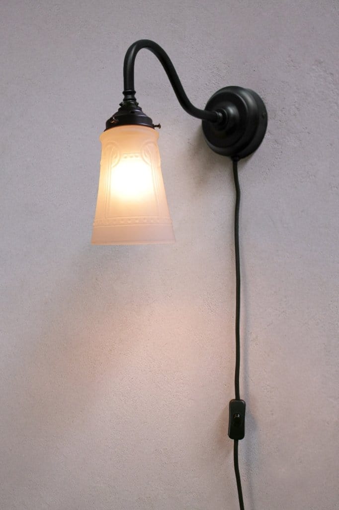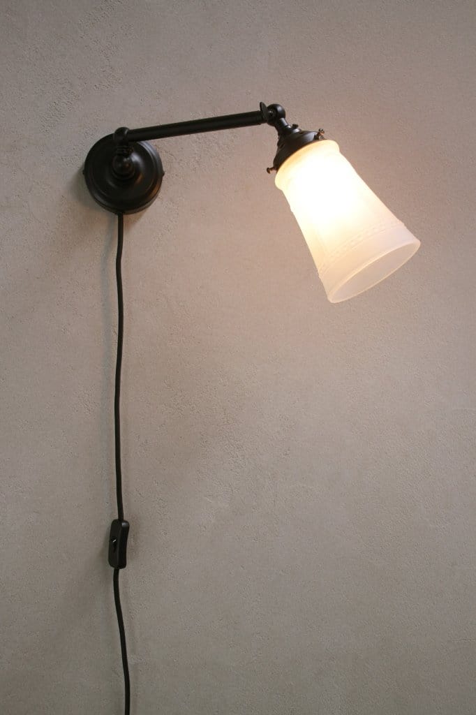 - Black steel sconce with wall plug and inline switch option