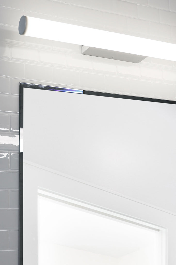 The Lamarr Vanity Light features a frosted acrylic diffuser that bathes your space in diffused light. The adjustable CCT lets you personalise the atmosphere, from a bright day light, neutral white or a warm white glow. Offered in two finishes; crisp white or polished chrome – and two convenient sizes, the Delaware Vanity Light complements bathrooms of all styles and sizes.