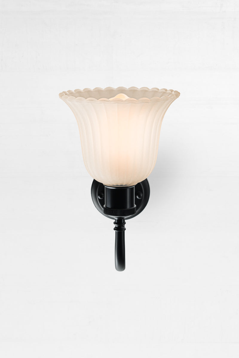 • Provides diffused lighting through its frost glass shade with scalloped edging