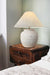 • For a alternative finish, this lamp features a textured ceramic base in Satin Black combined with a tapered shade in Sand Linen.