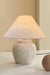 • This table lamp is comprised of a heavy textured clay ceramic base with a sandstone finish, paired with a fabric tapered shade in natural flax linen finish.