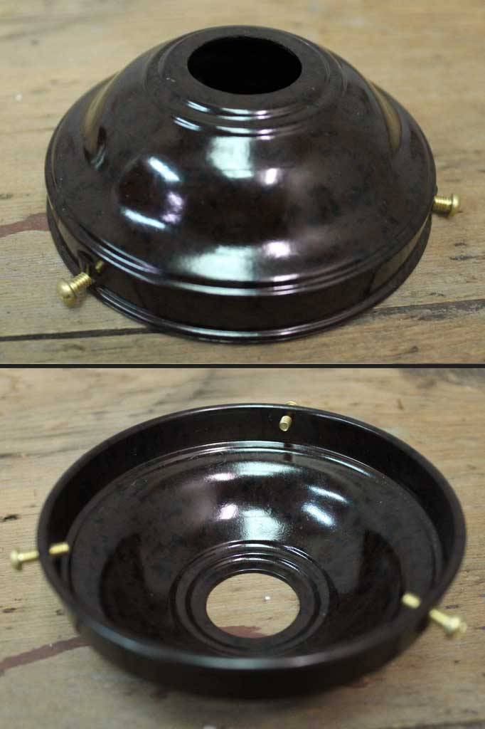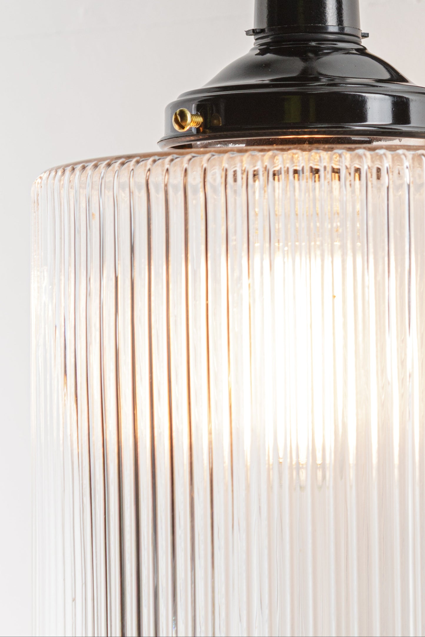 The glass shade is fitted to the batten holder with a genuine Bakelite gallery in black.