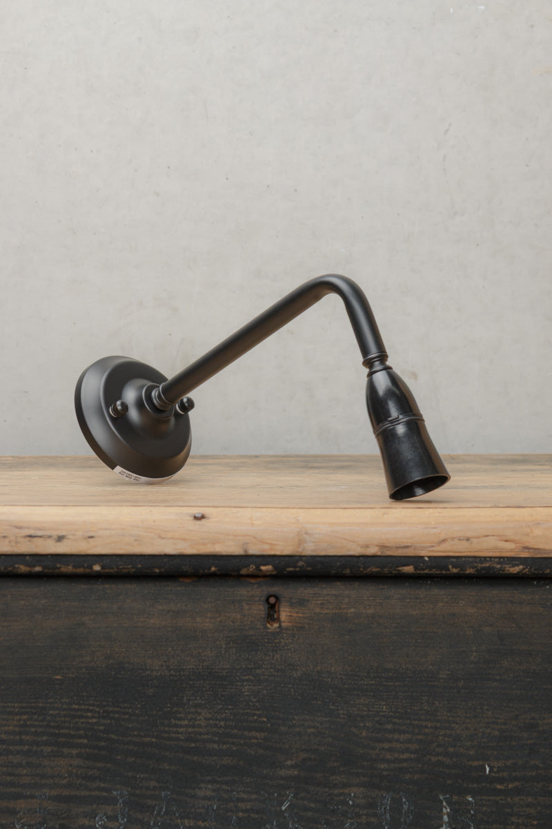 - The steel wall sconces are available in a long staight adjustable arm, 90 degree arm and an extra large gooseneck wall sconce, all finished in matt black.