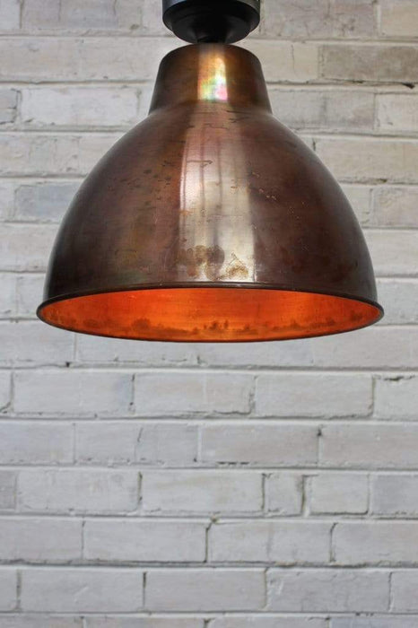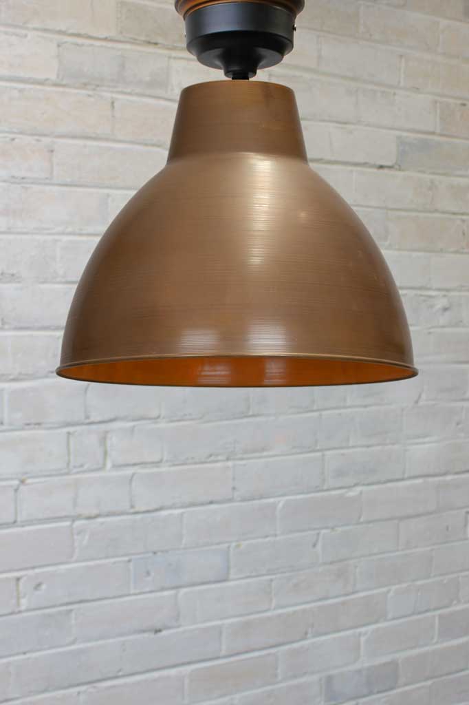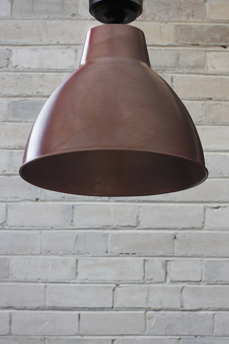 - The Aged Solid Brass/Copper shades have been fired for a deeper aged look. The Bright Brass/Copper shades have been mildly buffed on the outside to give them a brighter finish and then left raw. The inside is cleaned (not buffed) and then left raw. The shades are then oil rubbed to preserve the look for longer. Both finishes will continue to patina over time dependant on the environmental conditions they are placed in. The bright finish will patina at a slower rate because of the oil-rubbed finish.