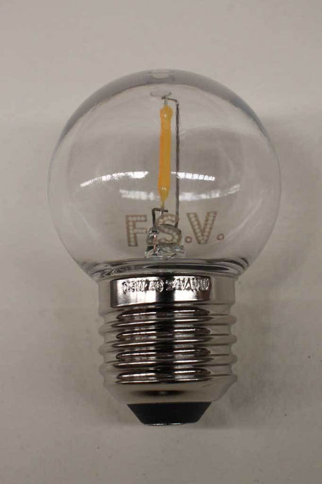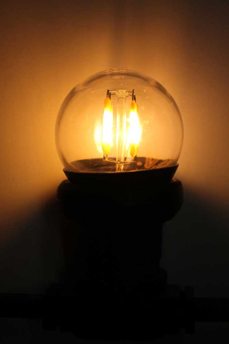 - There are six LED bulbs to choose from: Clear G45 0.5W shatterproof polycarbonate shell (1 filament, 2200K dim, warm light), Clear G45 2W shatterproof polycarbonate shell (4 filament, 2200K warm light), Opal G45 2W shatterproof polycarbonate shell (2700K – for a whiter, brighter appearance), Clear A60 4W (4 filament, 2200K warm light), Clear ST64 6W glass shell (6 filament, 2200K warm light).