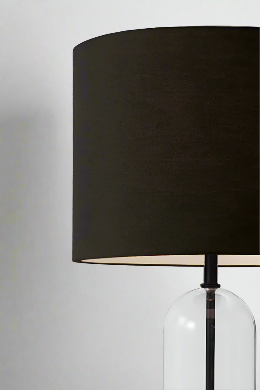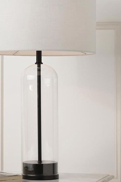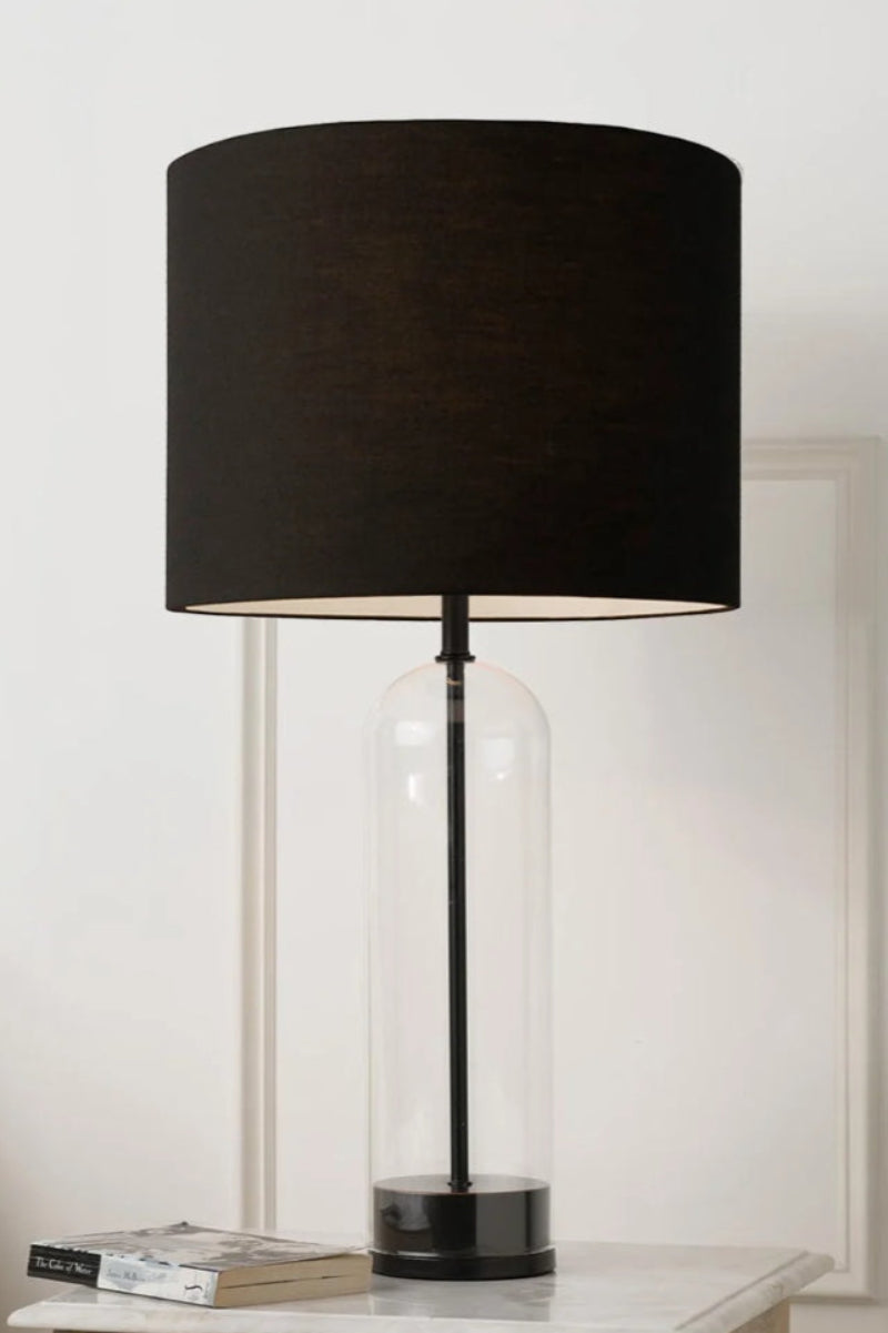 Bring a touch of classic elegance into your home with the Lyndhurst Glass Lamp. Featuring a tall clear glass base with antique bronze detailing, this table lamp coupled with an off white or black shade creating a sleek silhouette. Characterised by a timeless look it blends seamlessly with a wide range of interiors. Commercially, this lamp would add classic ambience to a bridal salon, day spa or country B&B.