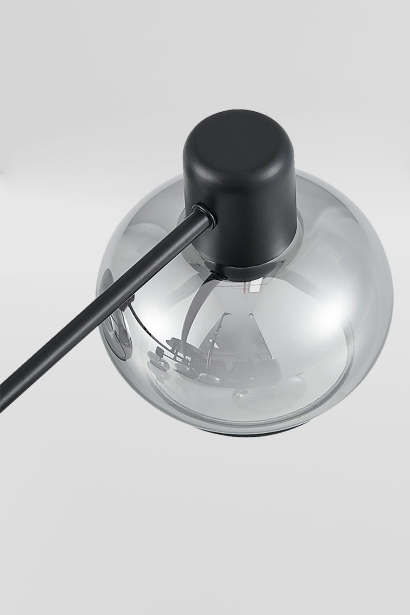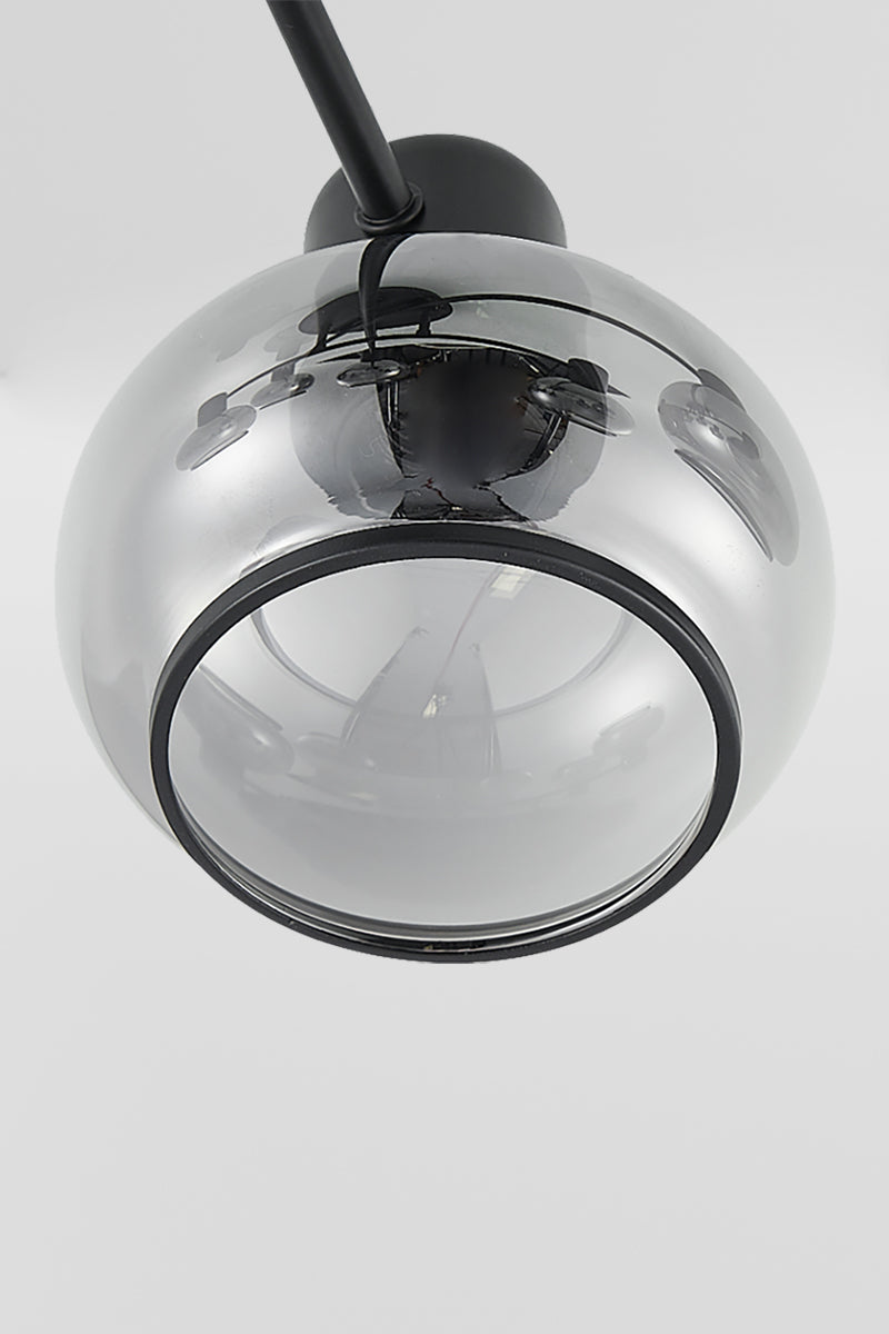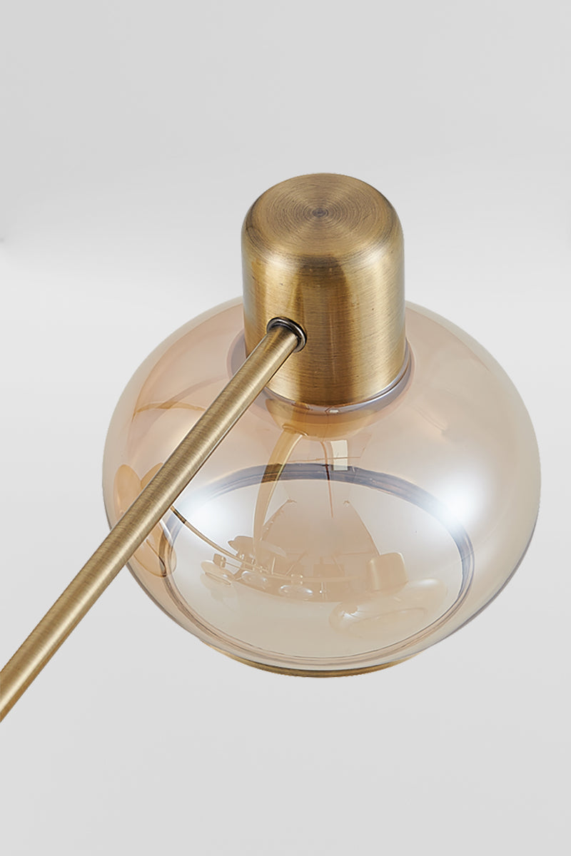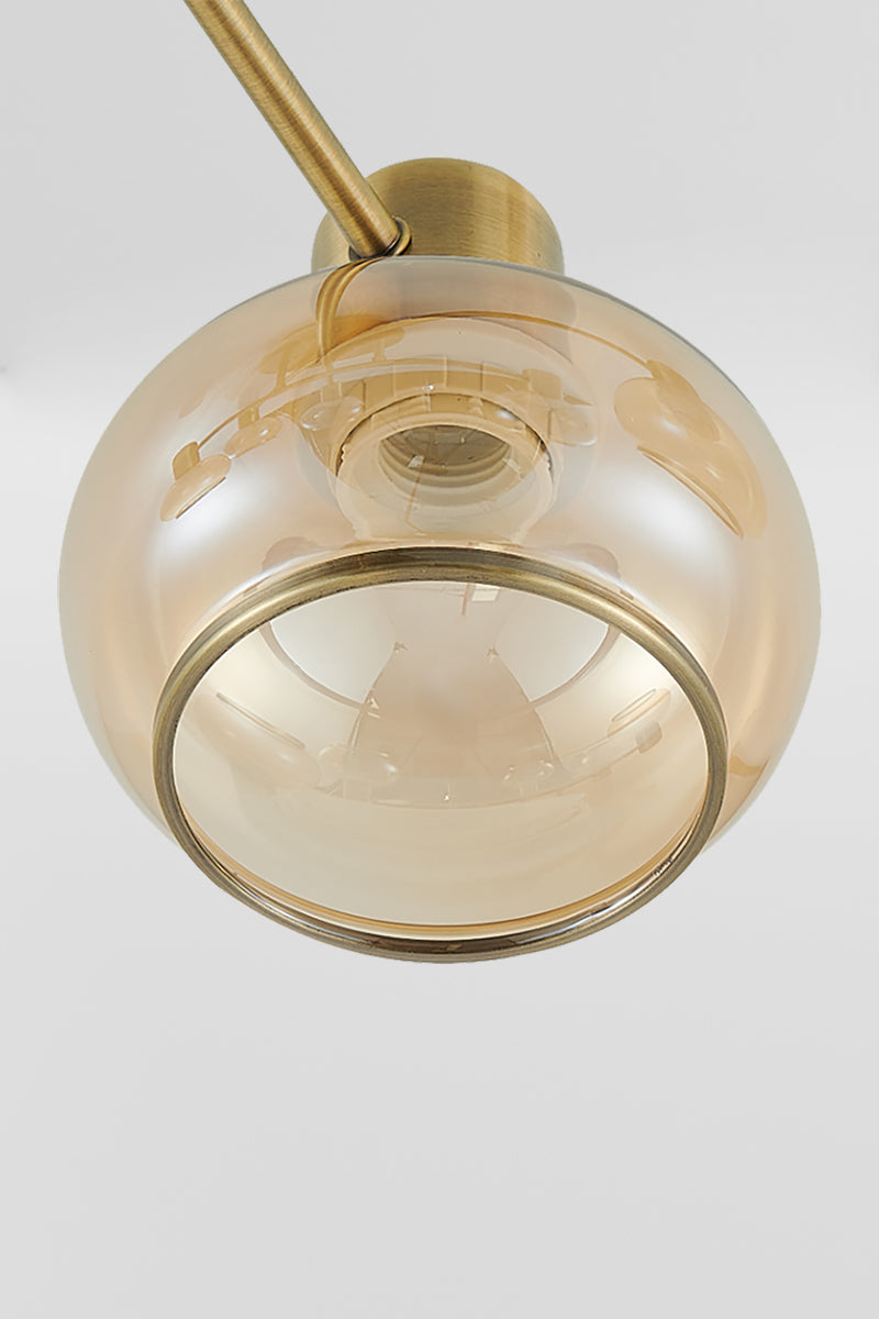 - The matt black frame is paired with smoke coloured glass shades while the antique brass frame is coupled with amber glass shades.