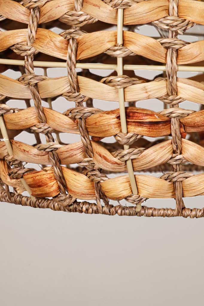 - Natural finish colour shade handcrafted with water lettuce raw paper fibres twisted into string meticulously woven over a sturdy wire frame.