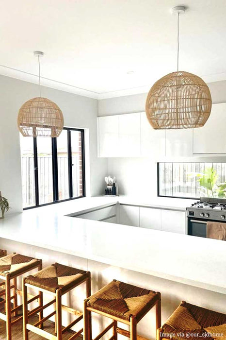The Meadowbrook Rattan Pendant Light adds a touch of warmth and coastal style to your living spaces with its authentic form and finish. Crafted from genuine rattan, its simple design is enhanced with subtle detailing and natural finish. The shade is paired with a classic braided textile cord that comes in a choice of two finishes to create a lighting statement. Either as a single accent or a series, the pendant light is the ideal update for a farmhouse kitchen as well as rustic or contemporary dining and living spaces.