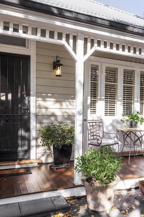 The Merricks Outdoor Wall Light will serve as a fitting update or finishing touch to your home whilst being a functional and sturdy exterior light. Inspired by early Australian period home lighting, this weather resistant light has a classic lantern design with a curled metal sconce arm and cone steel shade. A clear glass light shade secured by a metal round holder further adds to its historic look. Place at the front entrance to your home to make a welcoming statement or use to highlight a side passage, illuminate a side walkway, or subtly beckon punters outside your speakeasy alley bar.