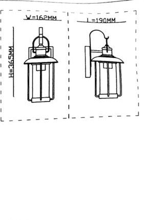 - Overall this light measures 162mm in width, 365mm in height and is 190mm in depth.