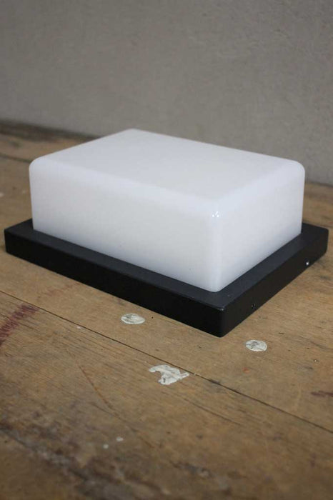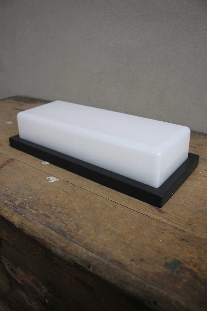 - Black metal frame highlighted with opal shade