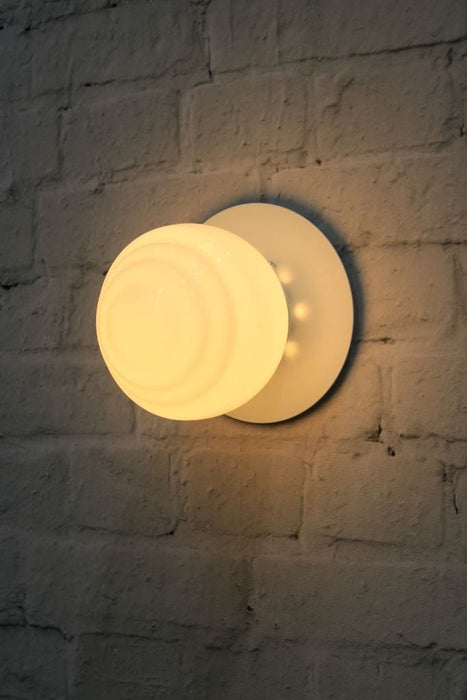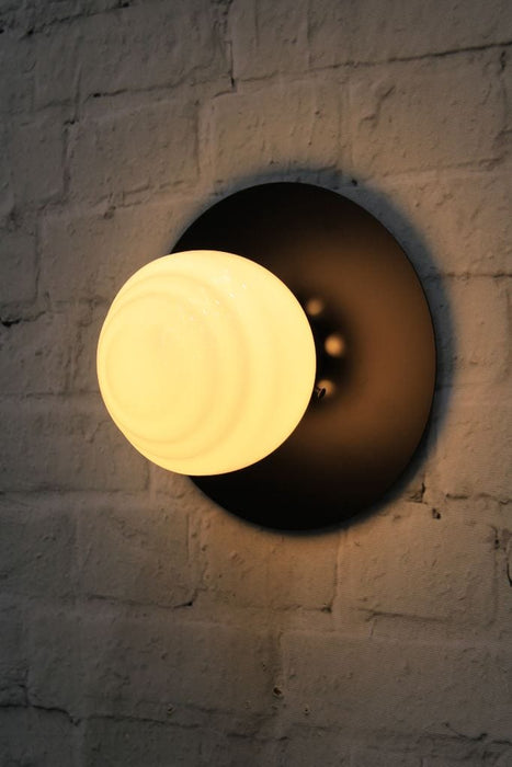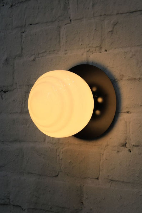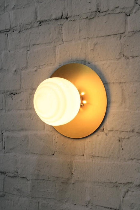 The Miami Glass Ball Disc Wall Light adds a distinct style feature to any wall. Available in black, solid brass and white, these lights are a fixture with flair, featuring a unique ridged design on the shade. The glass shades have an opal finish to create diffused, even light in any space. Use singularly or grouped to fit your style. This light fixture can be used on both ceilings and walls.