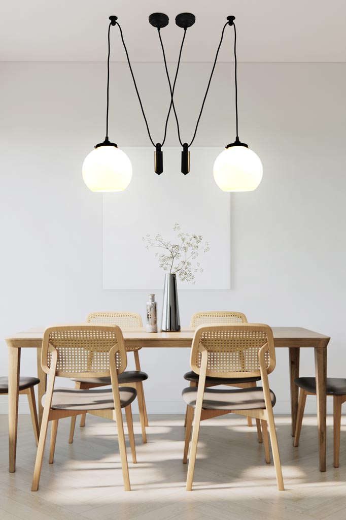 - The spacing between the ceiling rose and pulley wheel can be adjusted for a range of different looks.