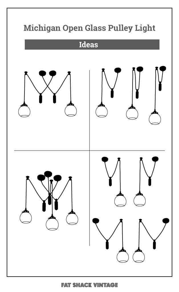 Add modern industrial flare to your space with the Michigan Open Glass Pulley Light. This versatile pendant features a pulley mechanism affixed to the ceiling at two points and has a black cloth suspension cord. The glass shade is held in place with a weight for a unique balanced effect. The distance between the two ceiling points can also be adjusted to offer varying looks and styling options using multiple fixtures. Either as a single accent or a series, the pendant light makes a novel lighting statement for a reading nook, kitchen, and a café or restaurant space.