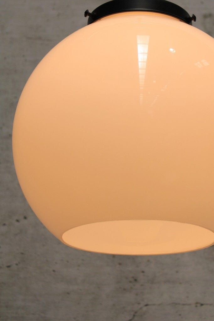 - The opal glass shade diffuses light while the open bottom allows for brighter directional light.