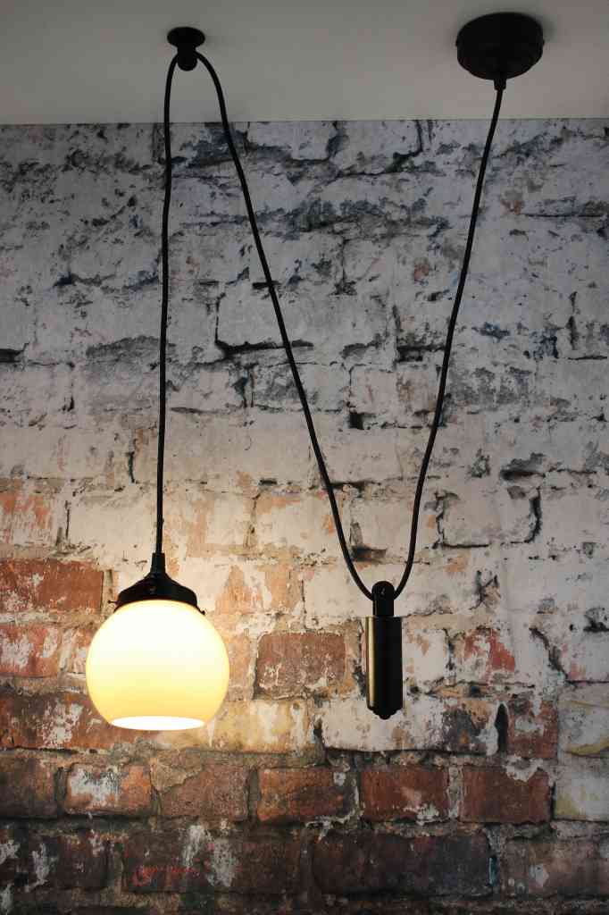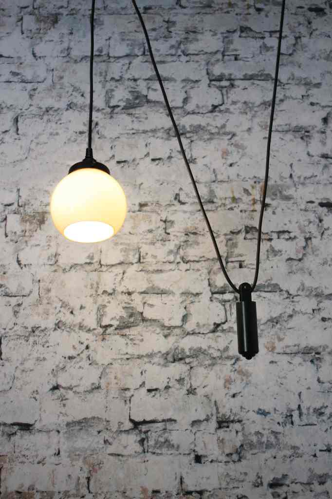 - This pendant light has an inventive design featuring a pulley mechanism held in place with a weight. The pulley mechanism allows an easily adjustable range of heights to suit your space.