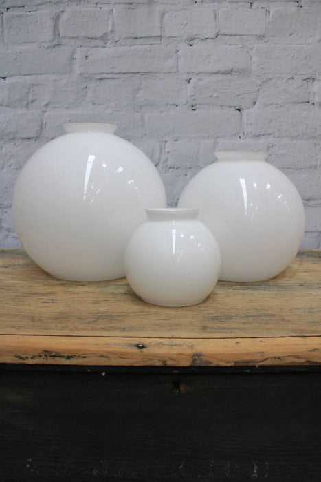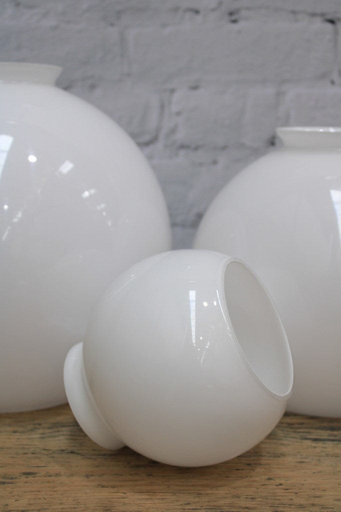 - The opal glass shades are available in three sizes allowing you to choose the perfect look for your space.